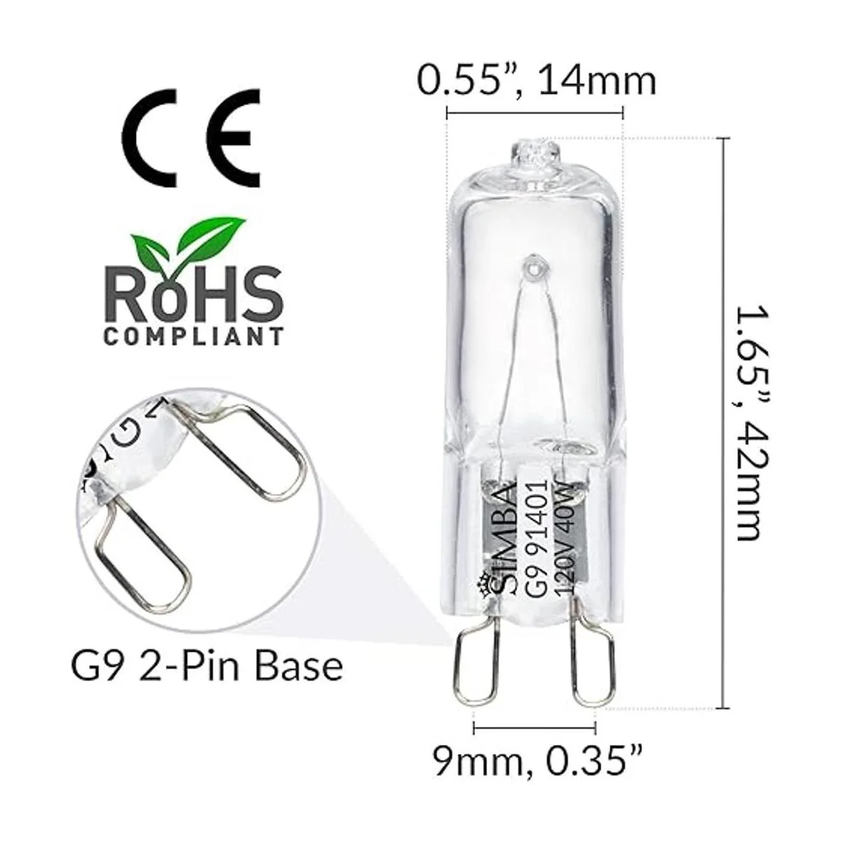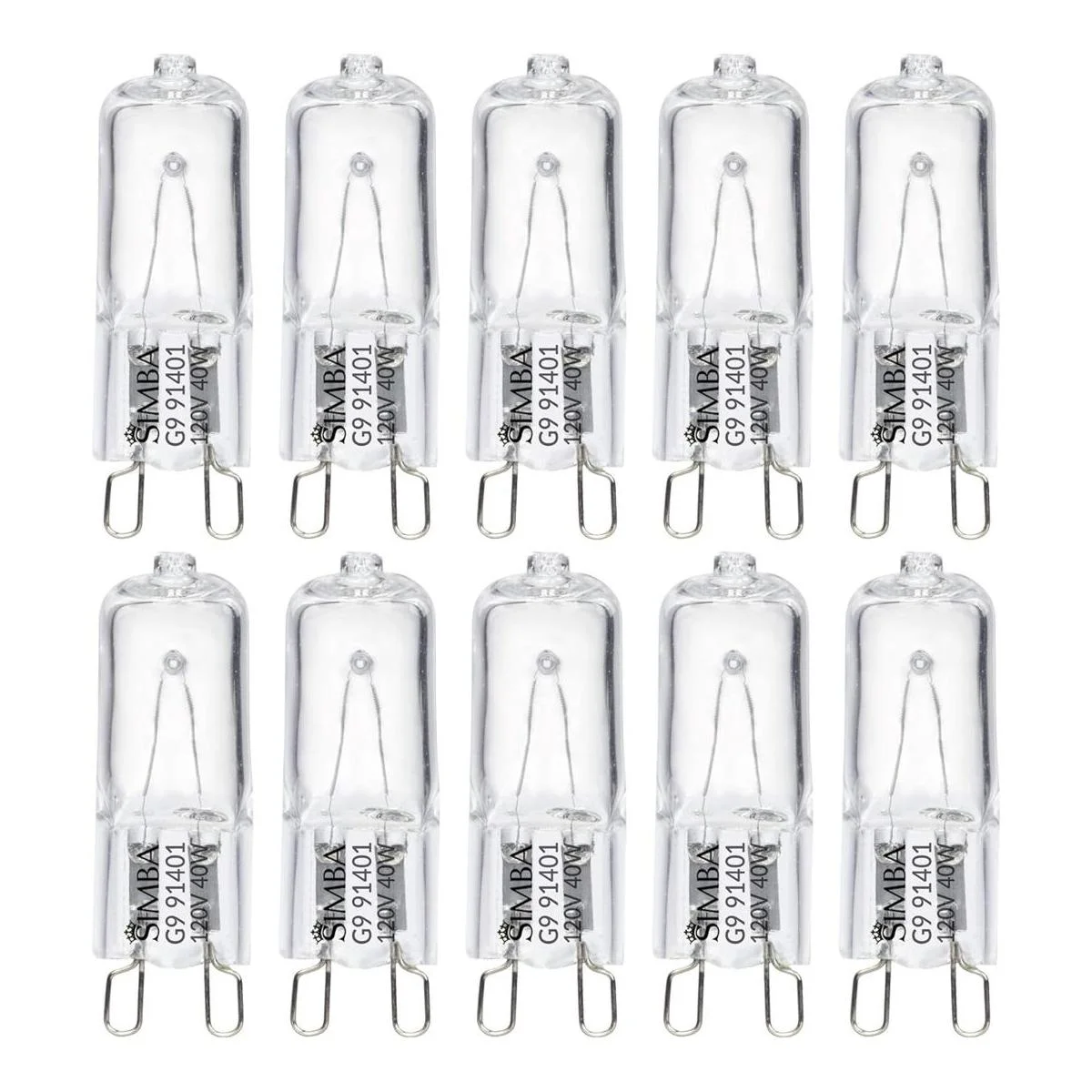 Simba Lighting Bombilla halógena G9 T4 de 40 W JCD BiPin paquete de 10 para candelabros, colgantes, luces de gabinete, luces de paisaje, lámparas de escritorio y pie, apliques de pared, 120 V regulable, 2700 K blanco cálido