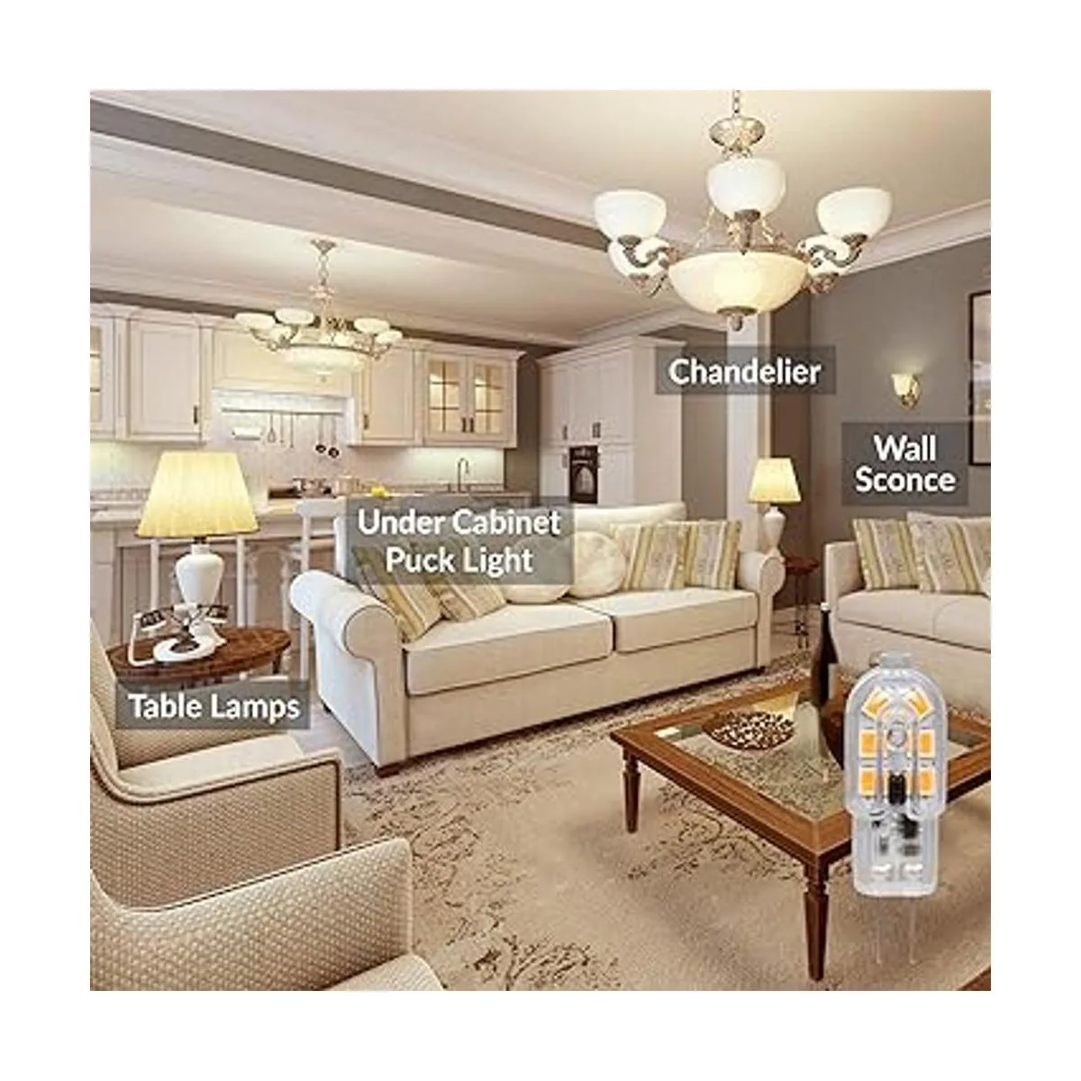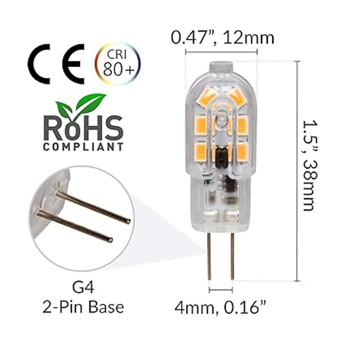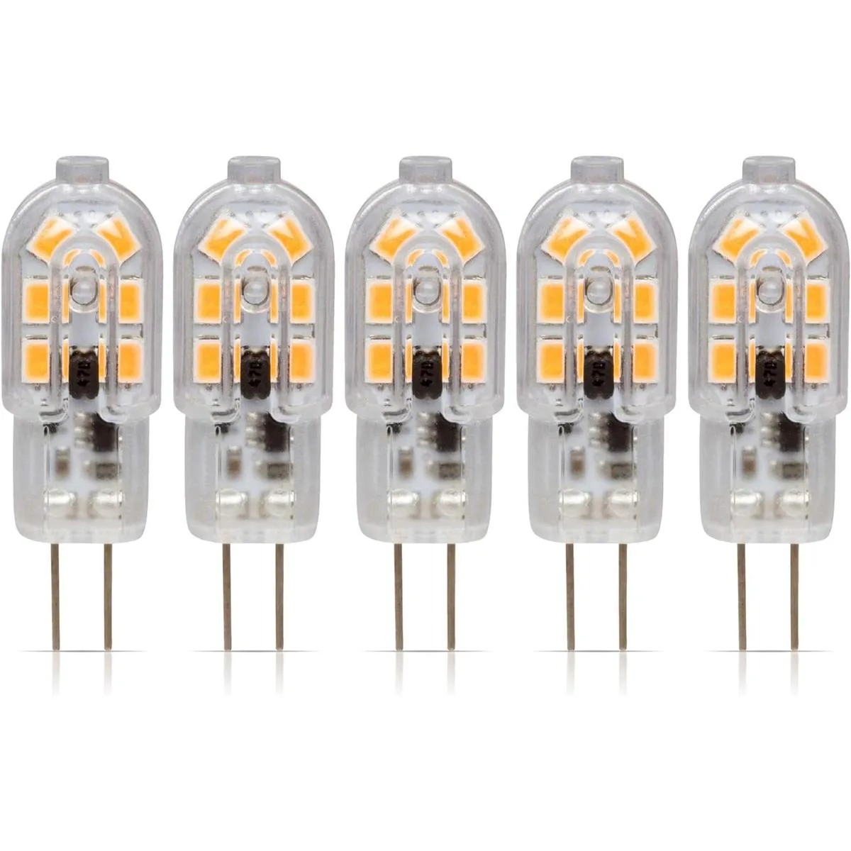 Simba Lighting Bombilla LED G4 paquete de 5 1.5W T3 20W halógena de repuesto de 12V ACDC JC base bipin para luces de acento, luz de disco debajo del gabinete, candelabros, iluminación de pista, no regulable, blanco suave 3000K