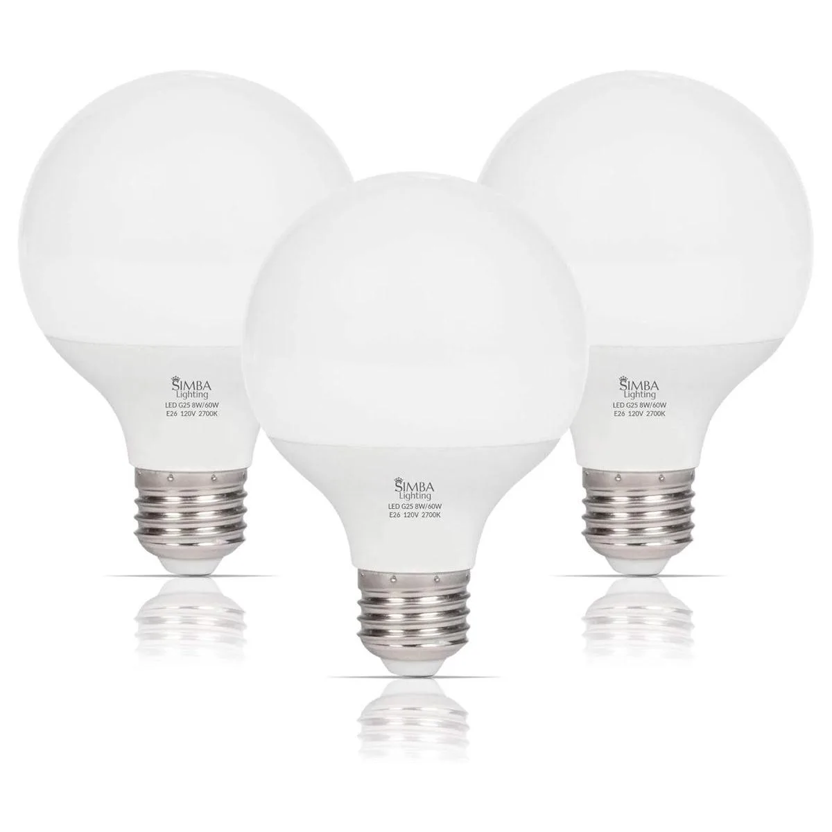 Simba Lighting G25 G80 Bombilla LED para baño, espejo de maquillaje, cubierta decorativa blanca esmerilada, 8 W, equivalente a 60 W, 120 V, base media estándar E26, blanco cálido 2700 K, paquete de 3