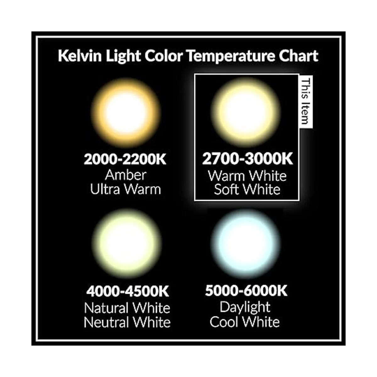 Salida de iluminación excelente y segura: chips LED de alta calidad. Amplio ángulo de haz de 270. Blanco cálido de 2700 K color amarillento, CRI 80, sin mercurio. Sin luz UV/IR. No regulable.