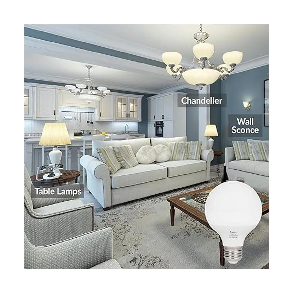 Muchas aplicaciones de iluminación: bombillas redondas con forma de globo son ideales para iluminación de tocador, espejos de maquillaje, baño, colgantes, luces de techo, lámparas de araña, lámparas de escritorio en hogares y oficinas.