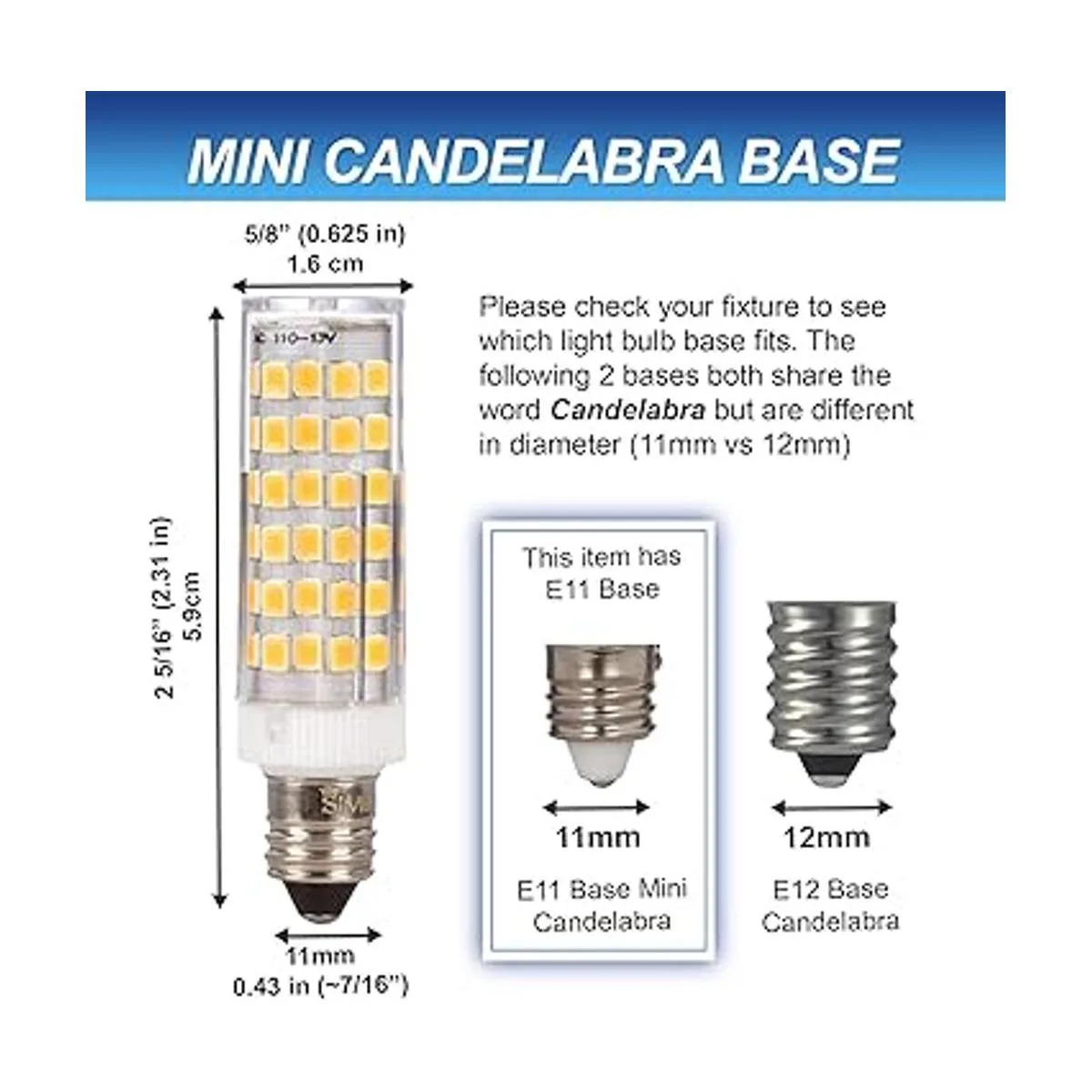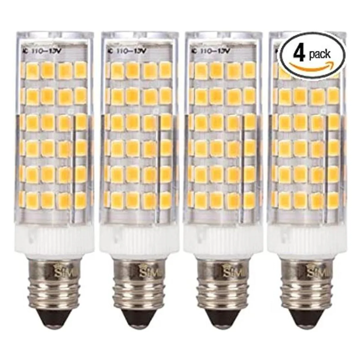 Simba Lighting LED E11 T4 MiniCandelabra JD Light Bulb 5W 40W to 50W Halogen Replacement 4 Pack 76SMD2835 Corn JDE11 120V for Chandeliers, Sconce, Cabinet Lighting, Soft White 3000K, Dimmable