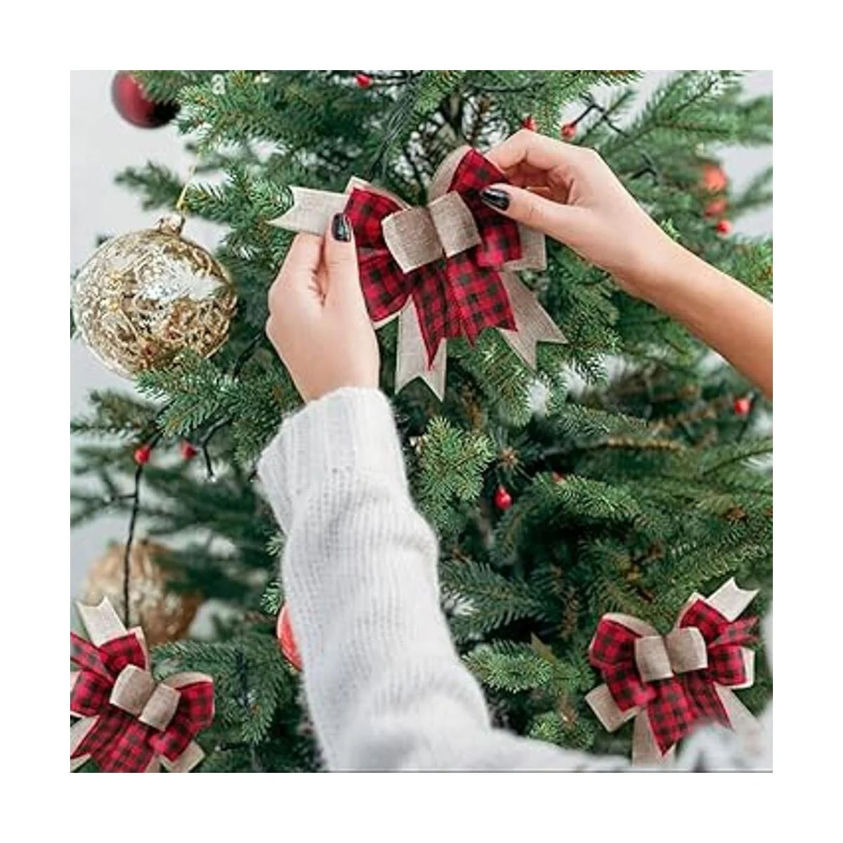 Diseño a cuadros: este lazo a cuadros está diseñado con elementos de cuadros rojos, blancos y negros, que son decentes, elegantes y también tradicionales, es una buena decoración para hacer que tu hogar esté lleno del ambiente festivo. especialmente para aquellas personas adictas a todos los patrones a cuadros, no se puede perder.