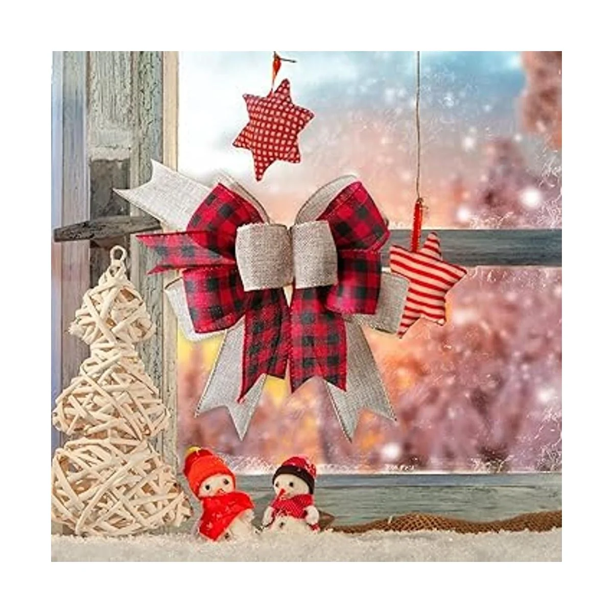 SIMISI RIBBON Lazo de arpillera rústica a cuadros de Navidad para decoración de cocina, 9.5 x 13 pulgadas