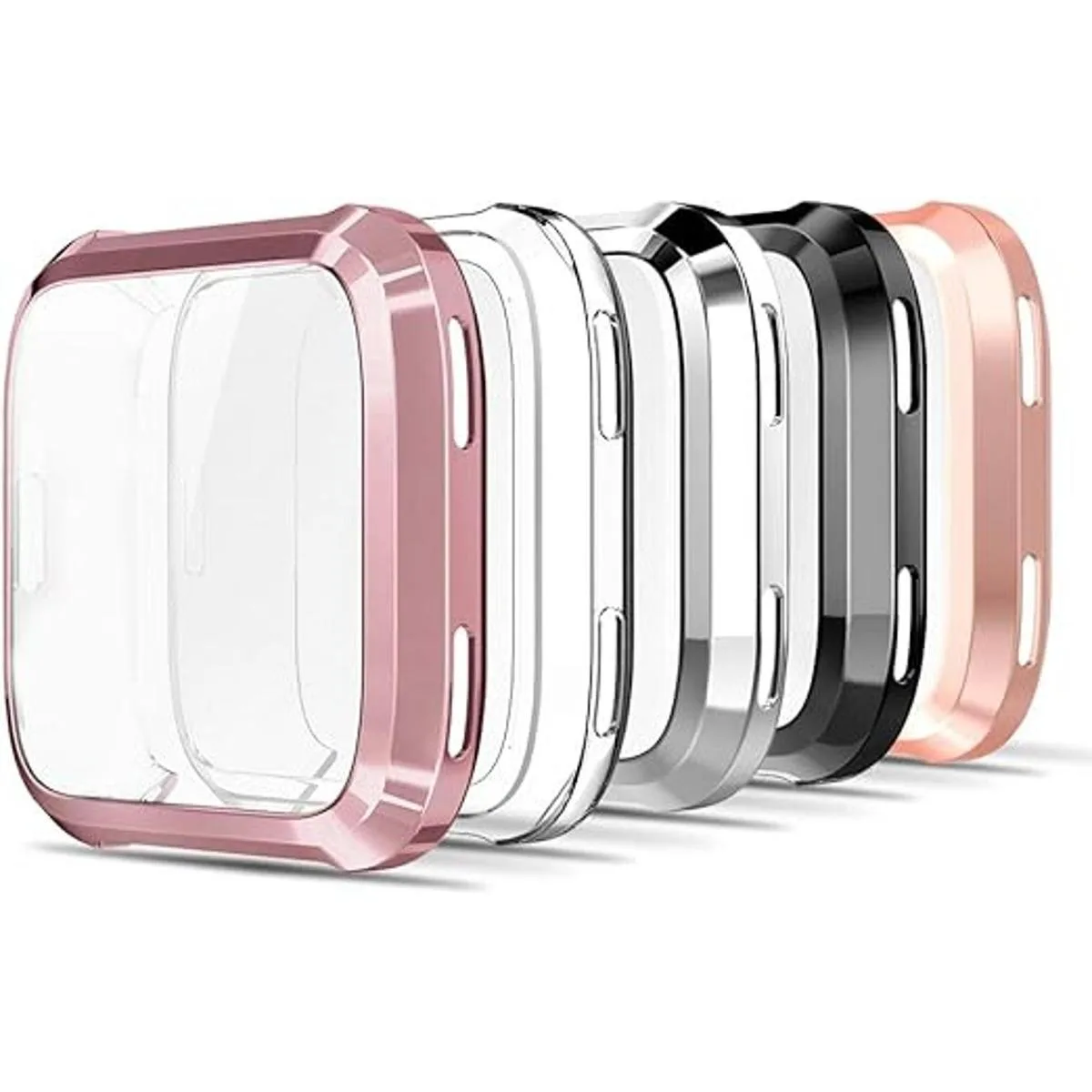 Simpeak Paquete de 5 fundas protectoras de pantalla suave compatible con reloj inteligente Fitbit Versa, protección completa, rosa rosa/transparente/plata/negro/oro rosa