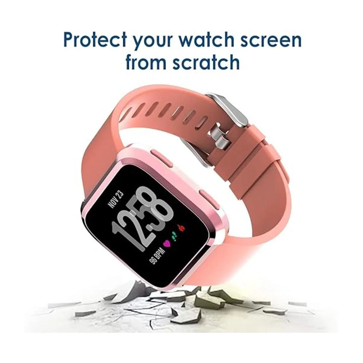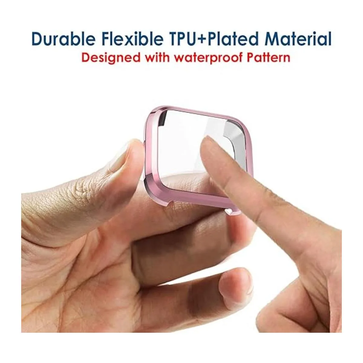 Simpeak Paquete de 5 fundas protectoras de pantalla suave compatible con reloj inteligente Fitbit Versa, protección completa, rosa rosatransparenteplatanegrooro rosa