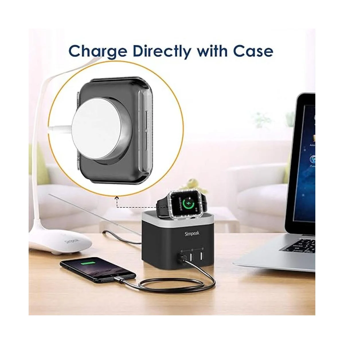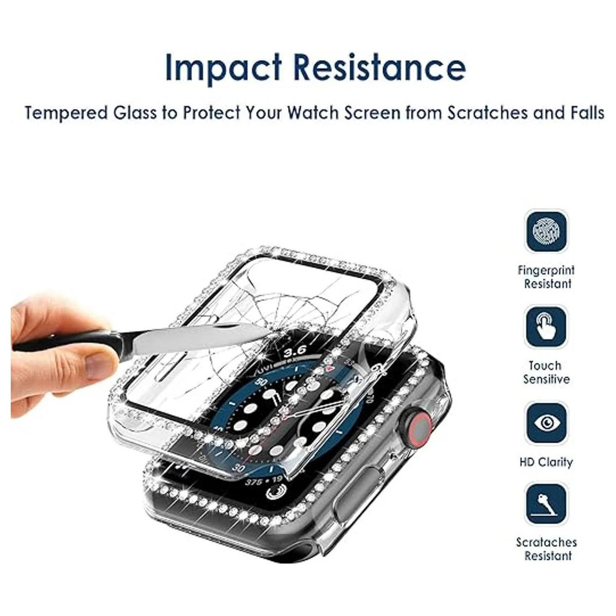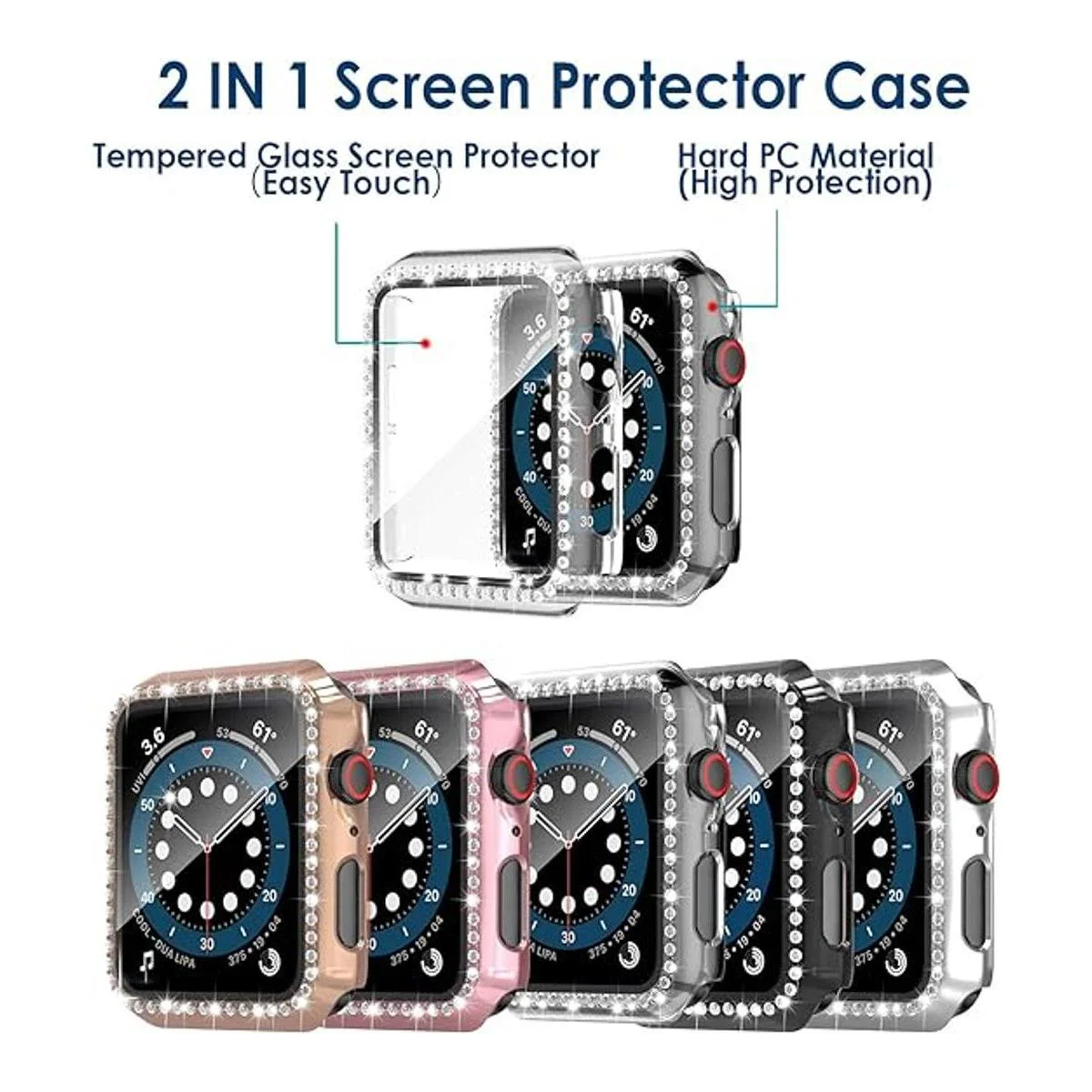 Funda de cristal brillante 2 en 1 y protector de pantalla de cristal: la funda rígida y delgada mantiene tu reloj ligero y fácil de instalar. Los diamantes de imitación brillantes añaden una brillante gama de brillo. El protector de pantalla integrado resiste los arañazos e impactos más duros, se siente más suave, funcionamiento más fluido y nunca dañará tus dedos. Cargador sin quitar la funda