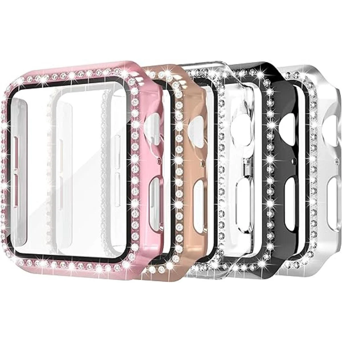 Paquete de 5 para tu elección: viene con 5 fundas compatibles con Apple Watch de 1.732 in, negro, oro rosa, plata, transparente, rosa rosa, diferentes fundas de reloj para que coincida con las correas de reloj de diferentes colores.