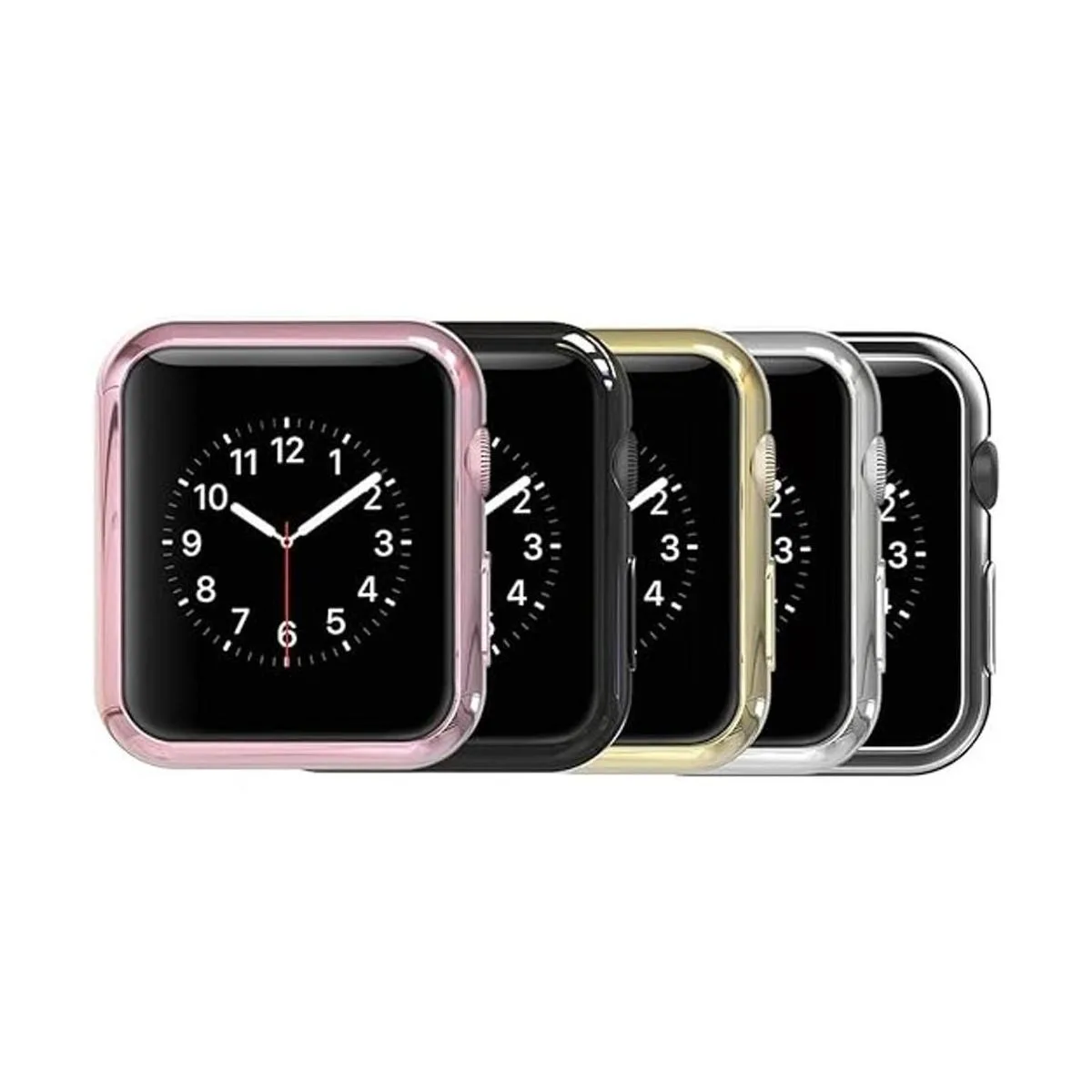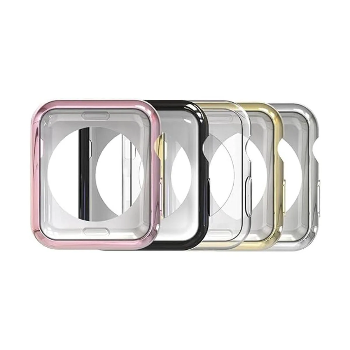 Simpeak Paquete de 5 fundas traseras delgadas y suaves compatibles con Apple Watch de 1.496 pulgadas, Series 2 Series 3, resistente a los arañazos, transparente, negro, dorado, oro rosa, plata sin pantalla