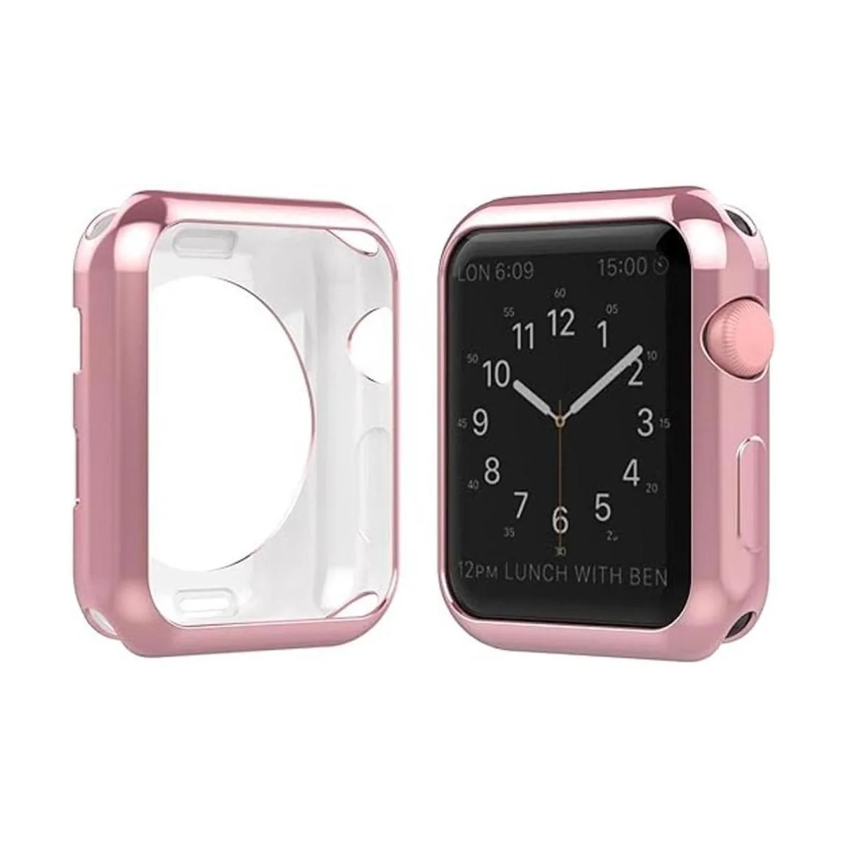 Varios colores para tu elección: viene con 5 fundas compatibles con Apple Watch, transparente o chapado negro, oro rosa, oro, plata, lo que hace que tu funda sea brillante, diferentes correas de reloj para cambiar la funda de color diferente.