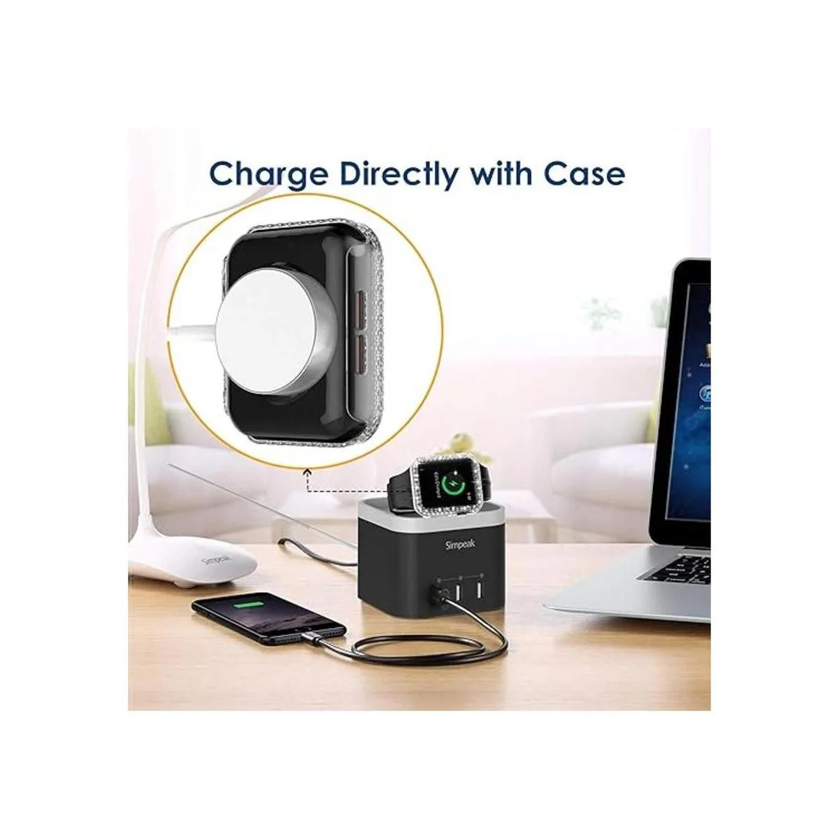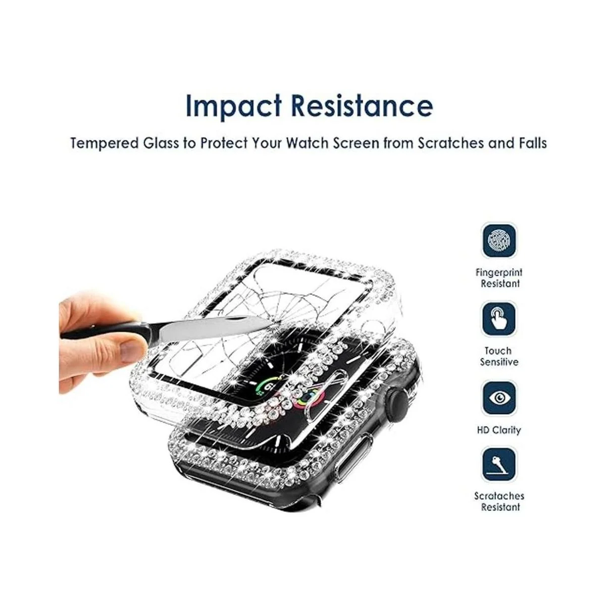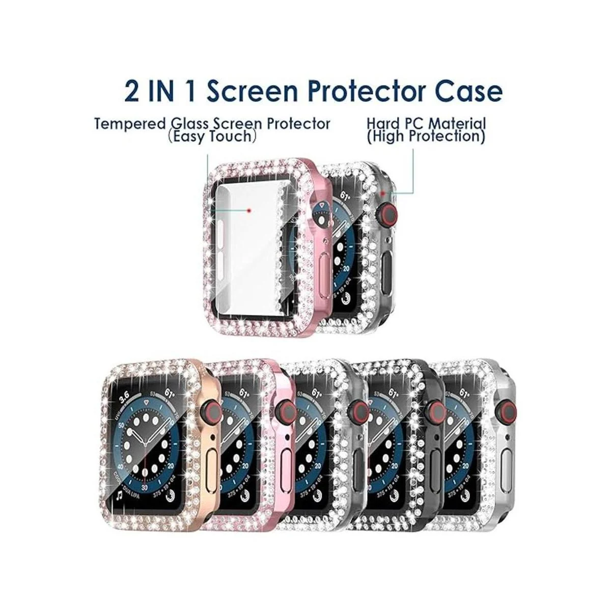 Funda de cristal doble brillante 2 en 1 y protector de pantalla de cristal: la funda rígida y delgada mantiene tu reloj ligero y fácil de instalar. Los diamantes de imitación brillantes añaden una brillante gama de brillo. El protector de pantalla integrado resiste los arañazos e impactos más duros, se siente más suave, funcionamiento más fluido y nunca dañará tus dedos. Cargador sin quitar la funda