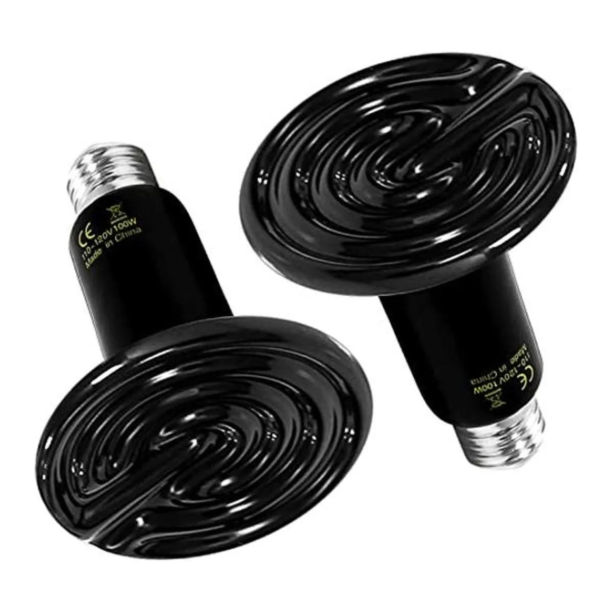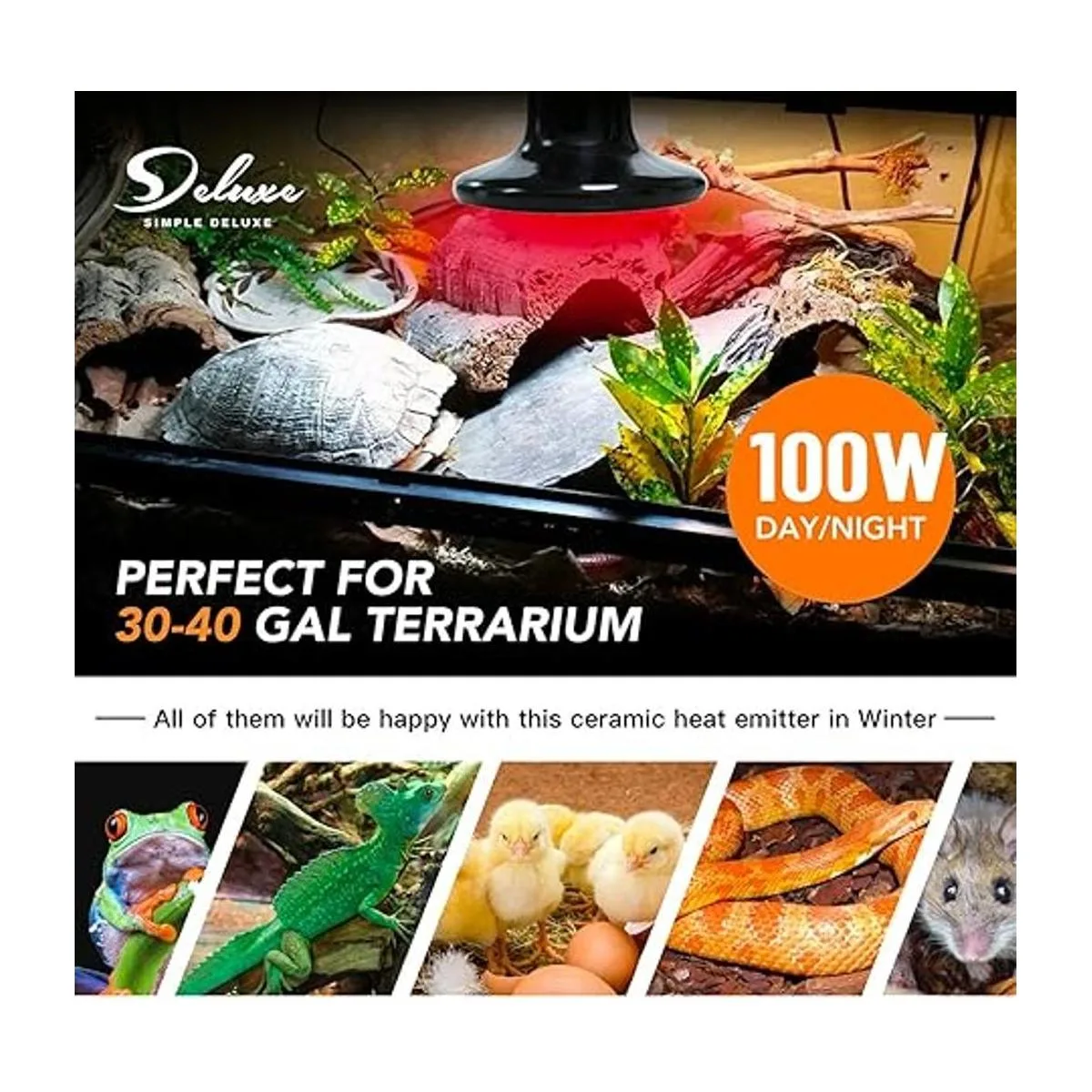 Simple Deluxe Bombilla de cerámica de 100 W, emisor de calor, para mascotas anfibias y pollos incubadores, paquete de 2 unidades con termómetro, color blanco y negro