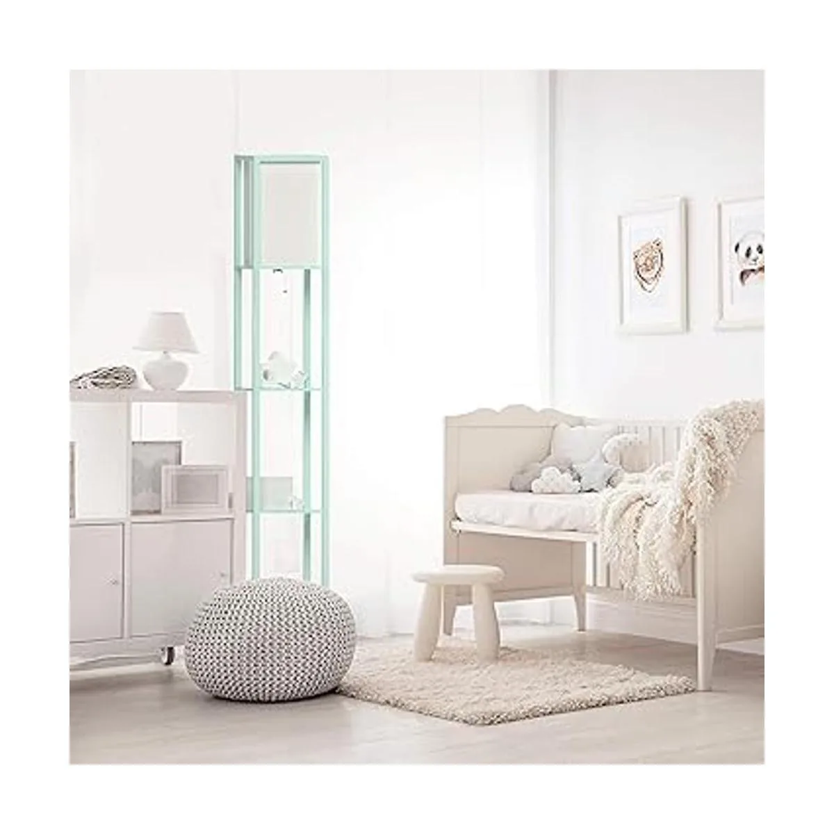 Simple Designs LF1014AQU Etagere Organizador de almacenamiento con estante de lino, lámpara de pie de pantalla, color aguamarina