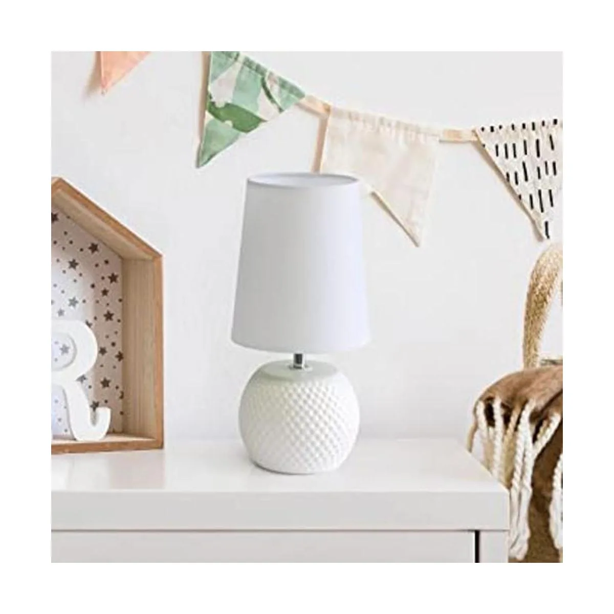 Simple Designs LT2084WHT Mini lámpara de mesa de noche de cerámica con textura tachonada, color blanco