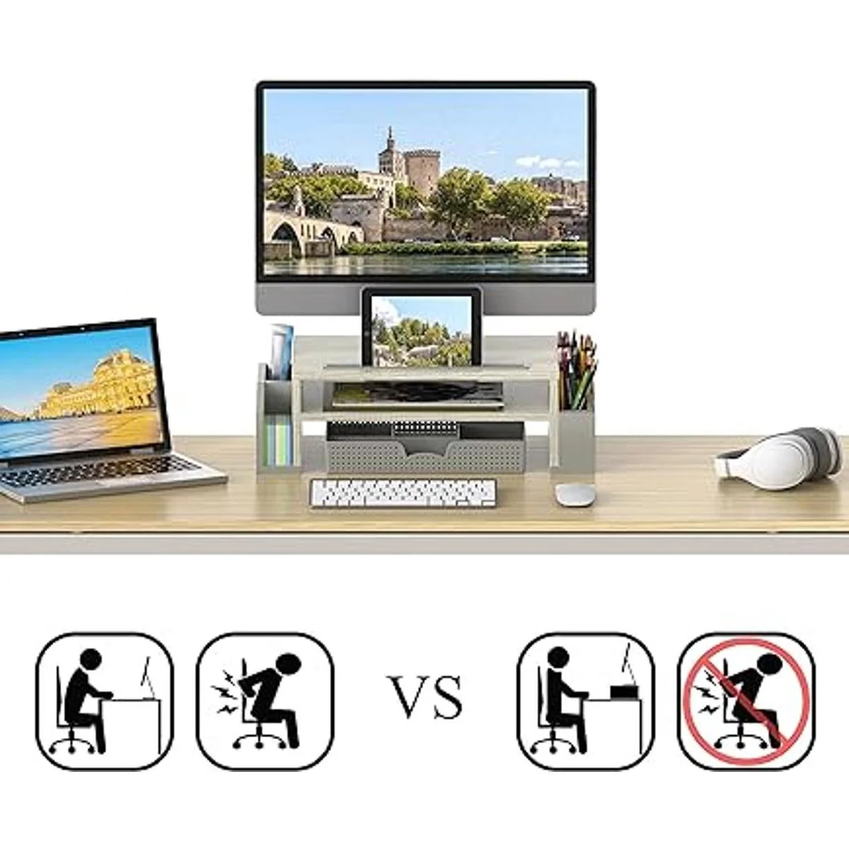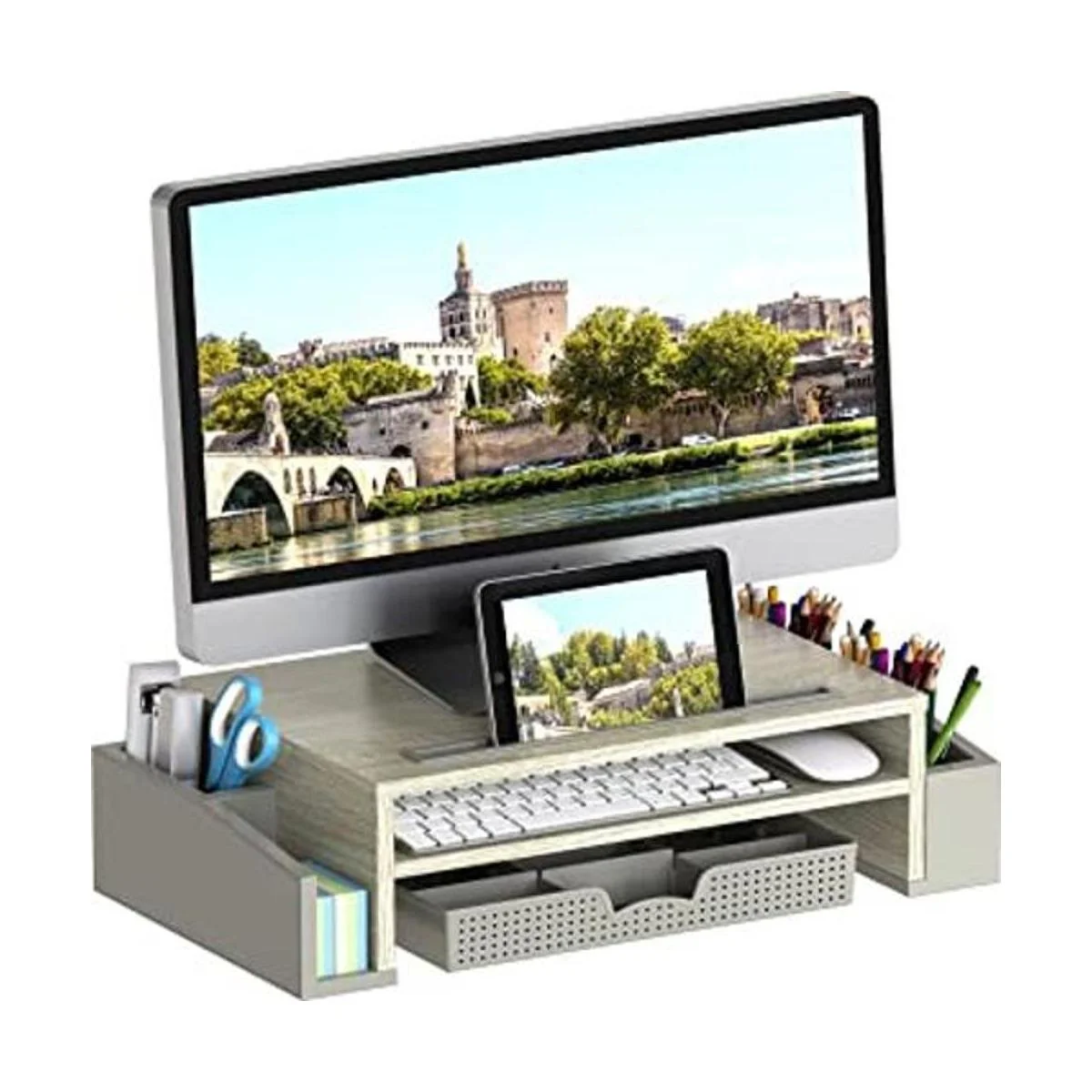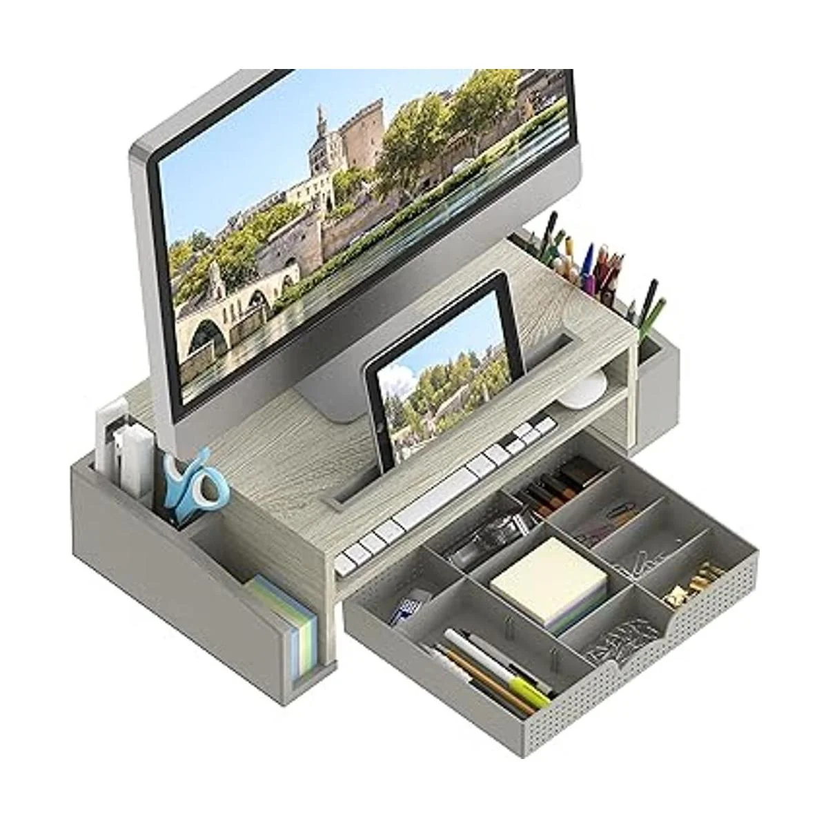 Elevador de monitor / soporte con cajón deslizante para impresora, computadora, computadora portátil