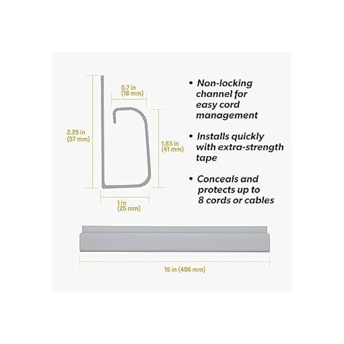 Solución de gestión de cables multiusos: cuenta con dos kits completos de cinco canales de 16 pulgadas que pueden adaptarse a cables de diferentes tamaños con un máximo de 8 cables y cables, desde cables AV, HDMI, mouse, teclado, cámara web, cables de altavoz, cables de Internet y mucho más. Móntalo en la parte posterior de escritorios, encimeras o en la base de tu suelo para proporcionar ubicaciones discretas y de perfil bajo para guardar cables de larga duración.