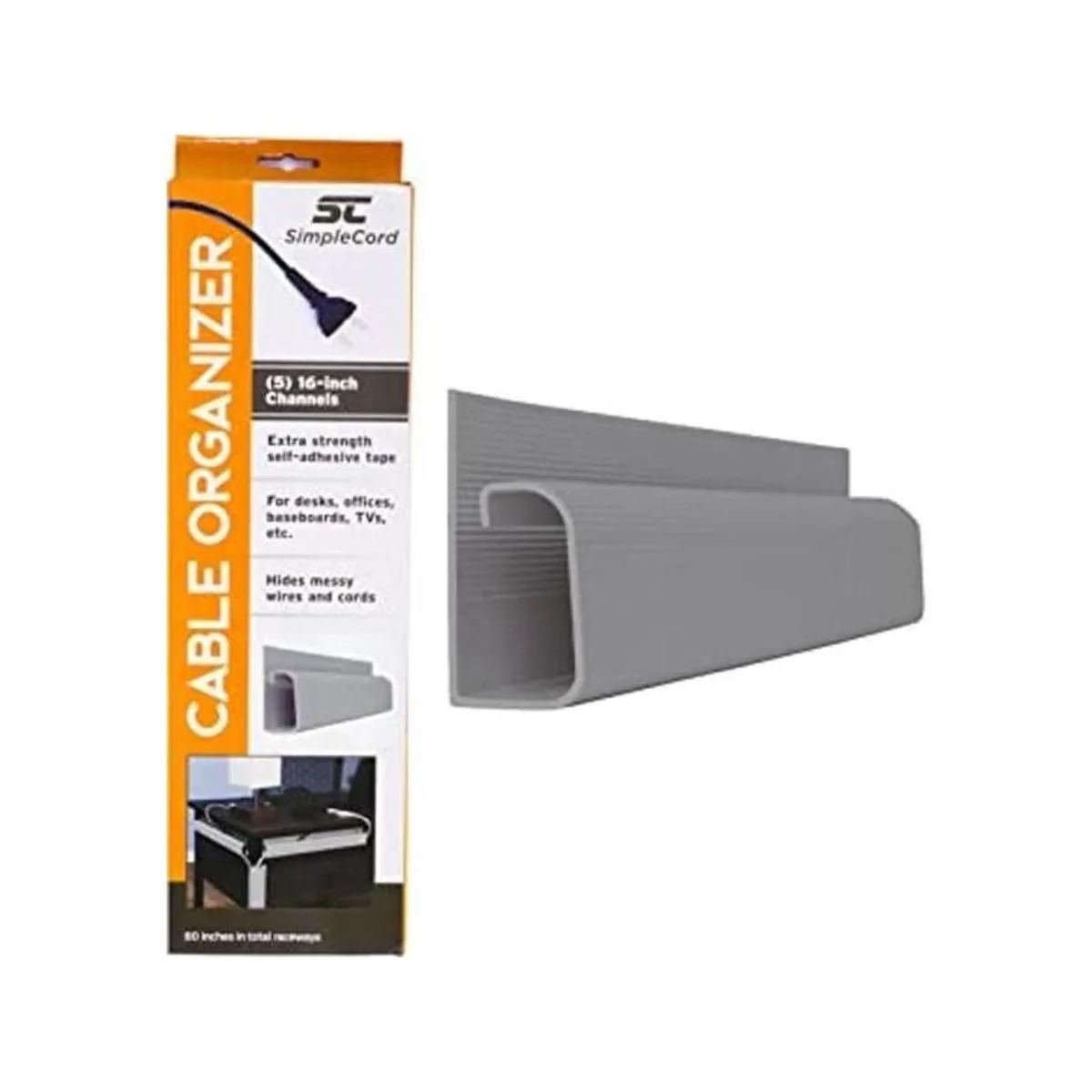 SimpleCord Organizador de cables de escritorio con canal en J 5 canales grises de pista de rodadura Kit de gestión de cubierta de cable para escritorios, oficinas y cocinas