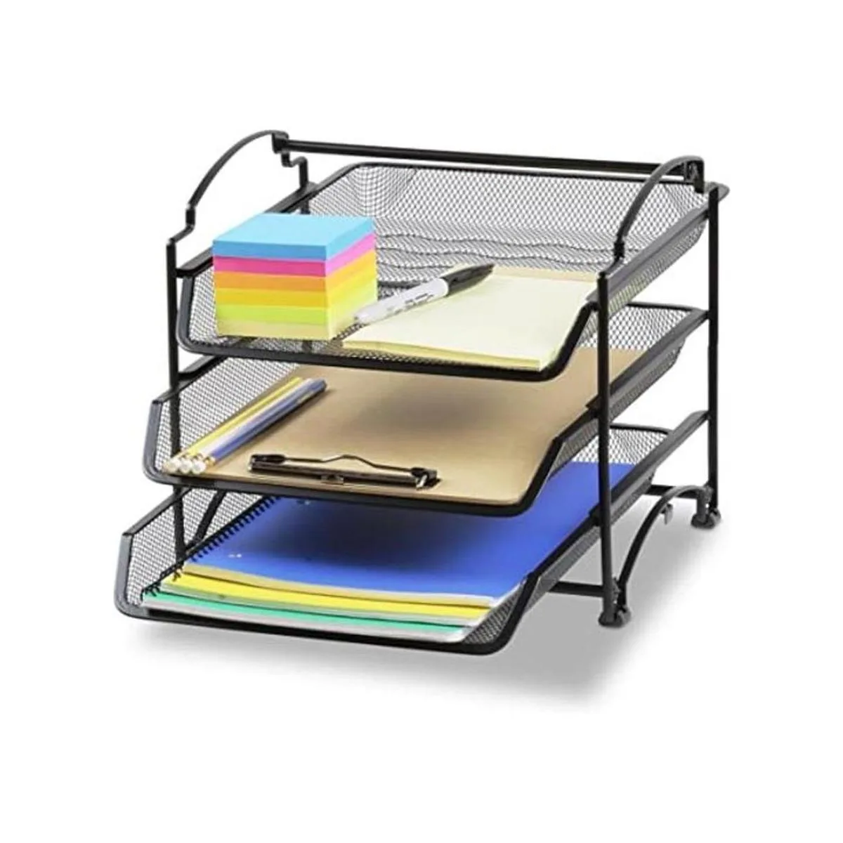 SimpleHouseware Organizador de documentos y cartas para escritorio, apilable de tres niveles, negro