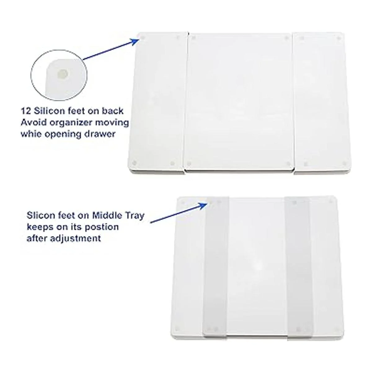 La bandeja central extraíble permite que este organizador se transforme en 3 piezas. Por lo tanto, se puede utilizar en 3 tamaños diferentes de cajones.