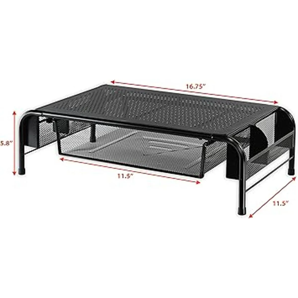 SimpleHouseware. Soporte elevador de escritorio de metal con cajón organizador, Negro Paquete de 2