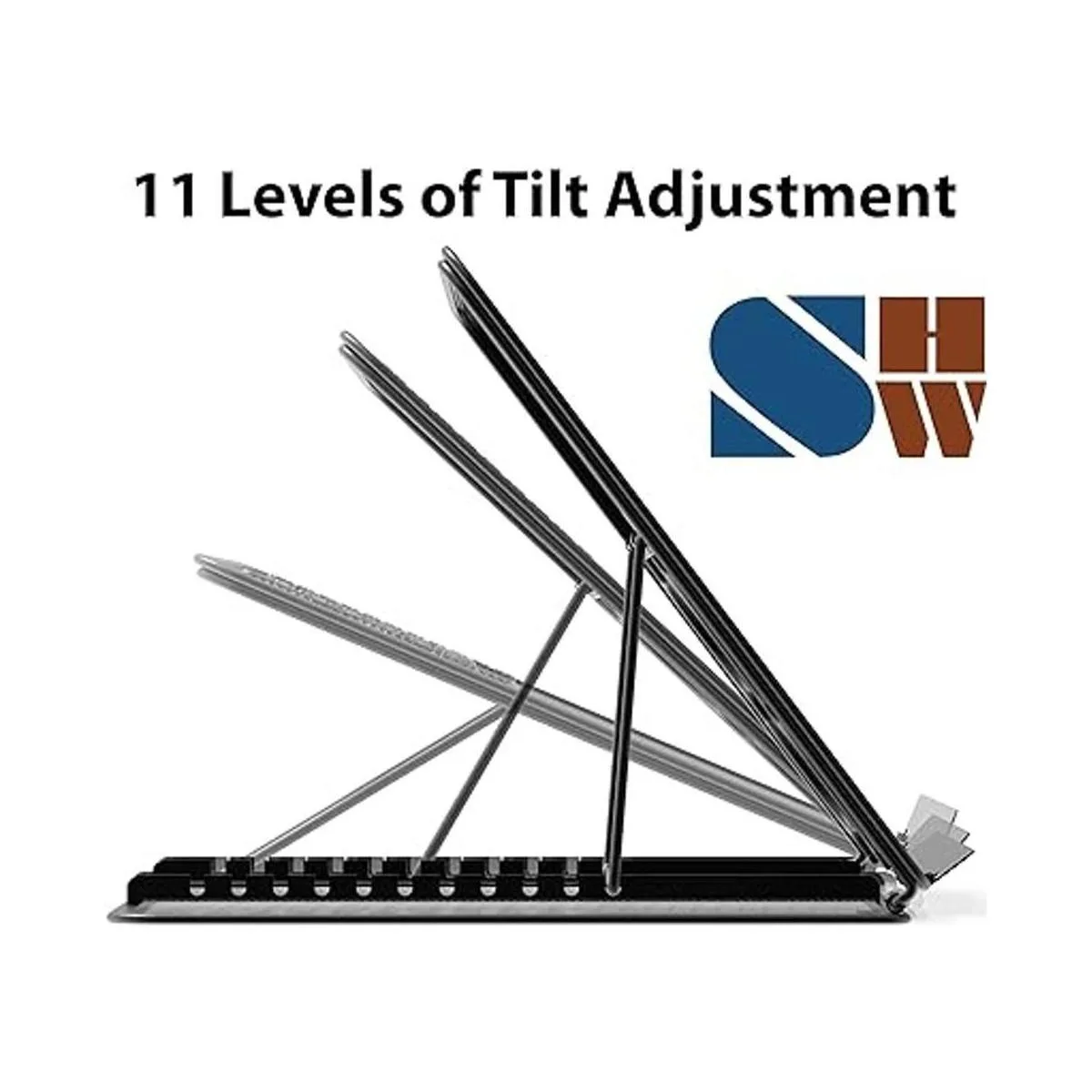 Ajusta tu portátil, laptop, libro de texto o iPad a una altura de visualización cómoda. Reduce la tensión del cuello y los ojos.