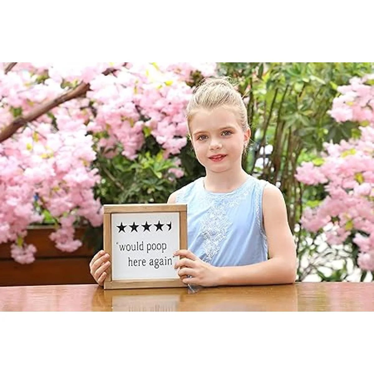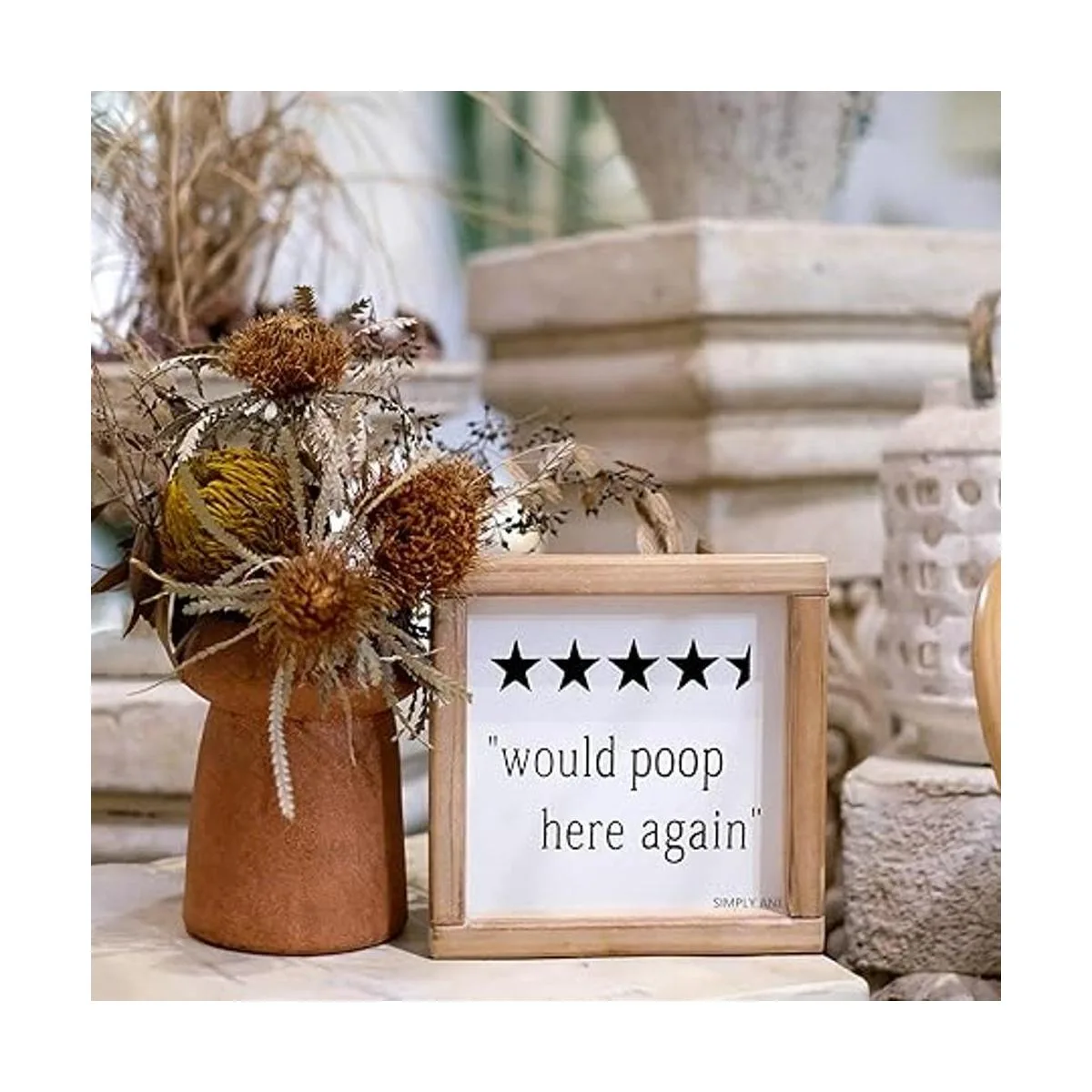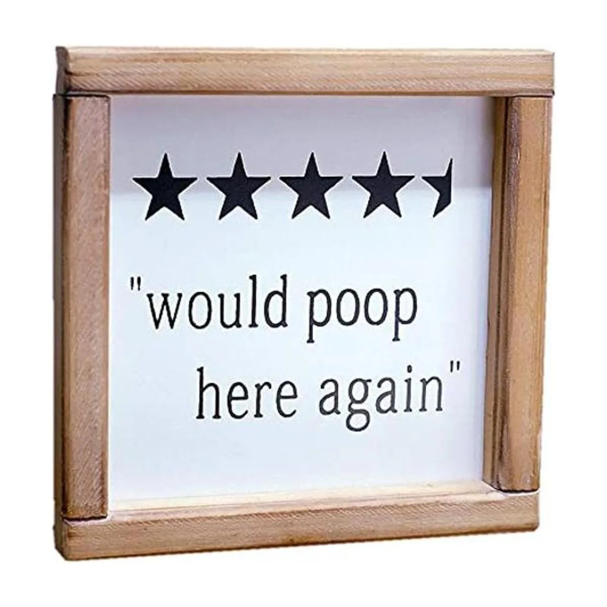 SIMPLY ANI Letrero de baño divertido con texto en inglés Would Poop Here Again Letrero de humor para baño, decoración de baño de granja, decoración de baño de invitados, decoración de cuarto de baño