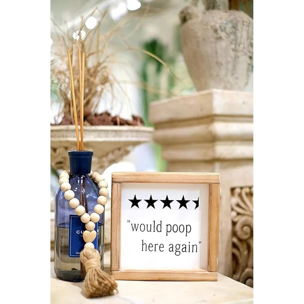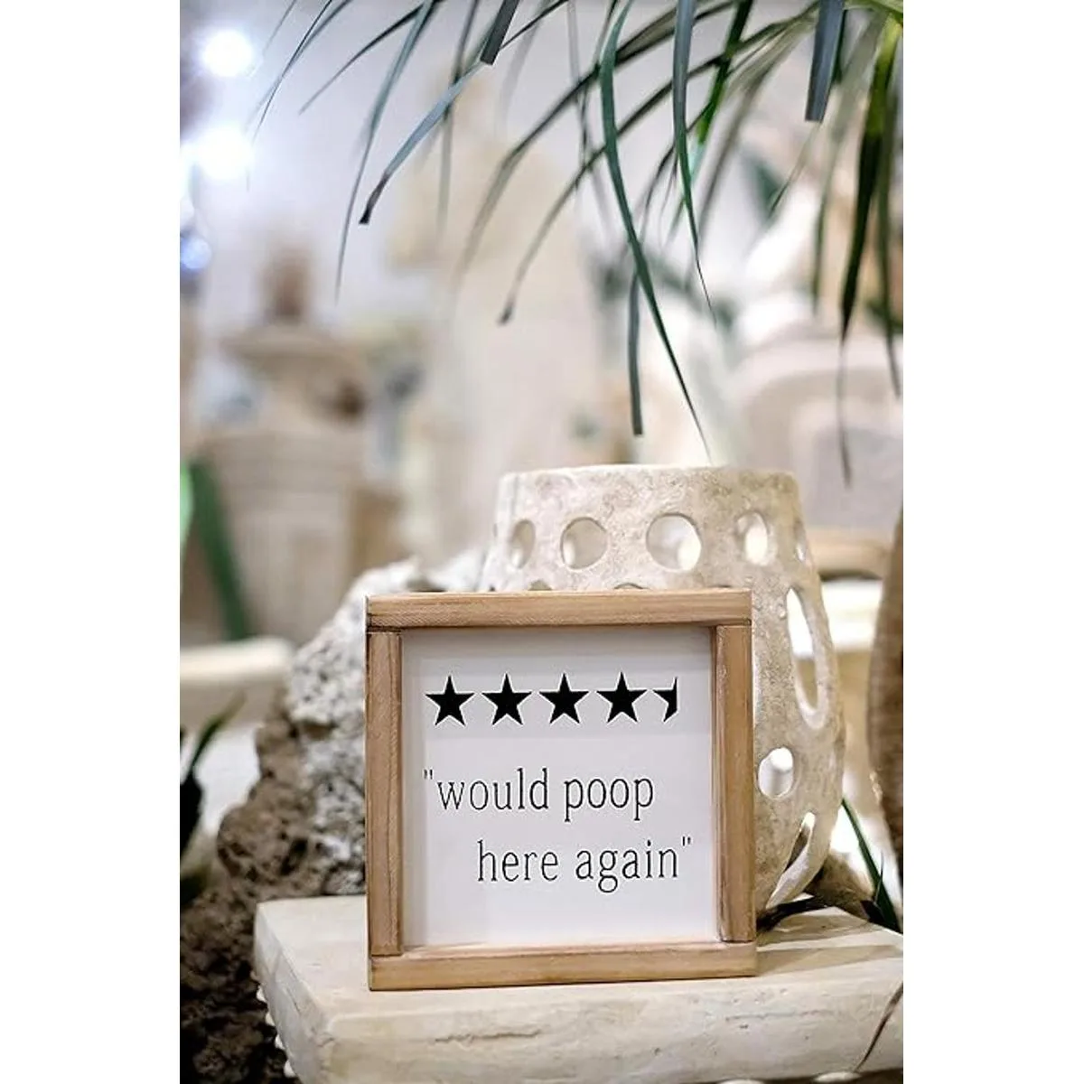 Humor de baño: letrero de 4.5 estrellas con texto en inglés Would Poop Here Again. A tus invitados les encantará este divertido cartel mientras están usando tu baño