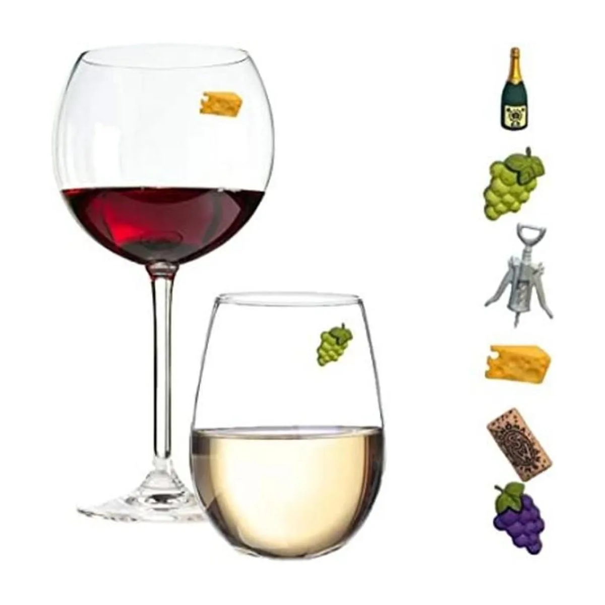 Simply Charmed Juego de 6 divertidos marcadores magnéticos para bebidas con temática de vino