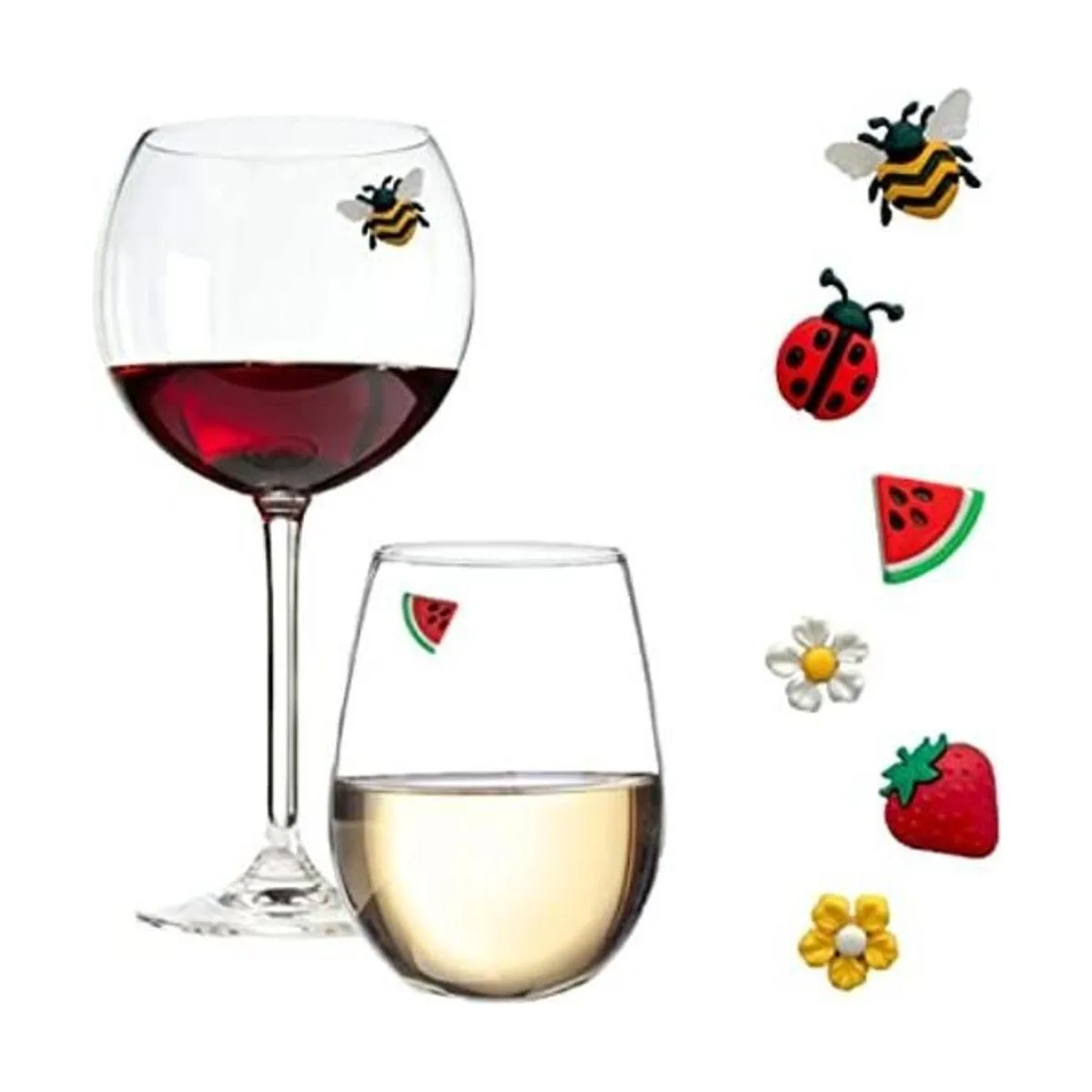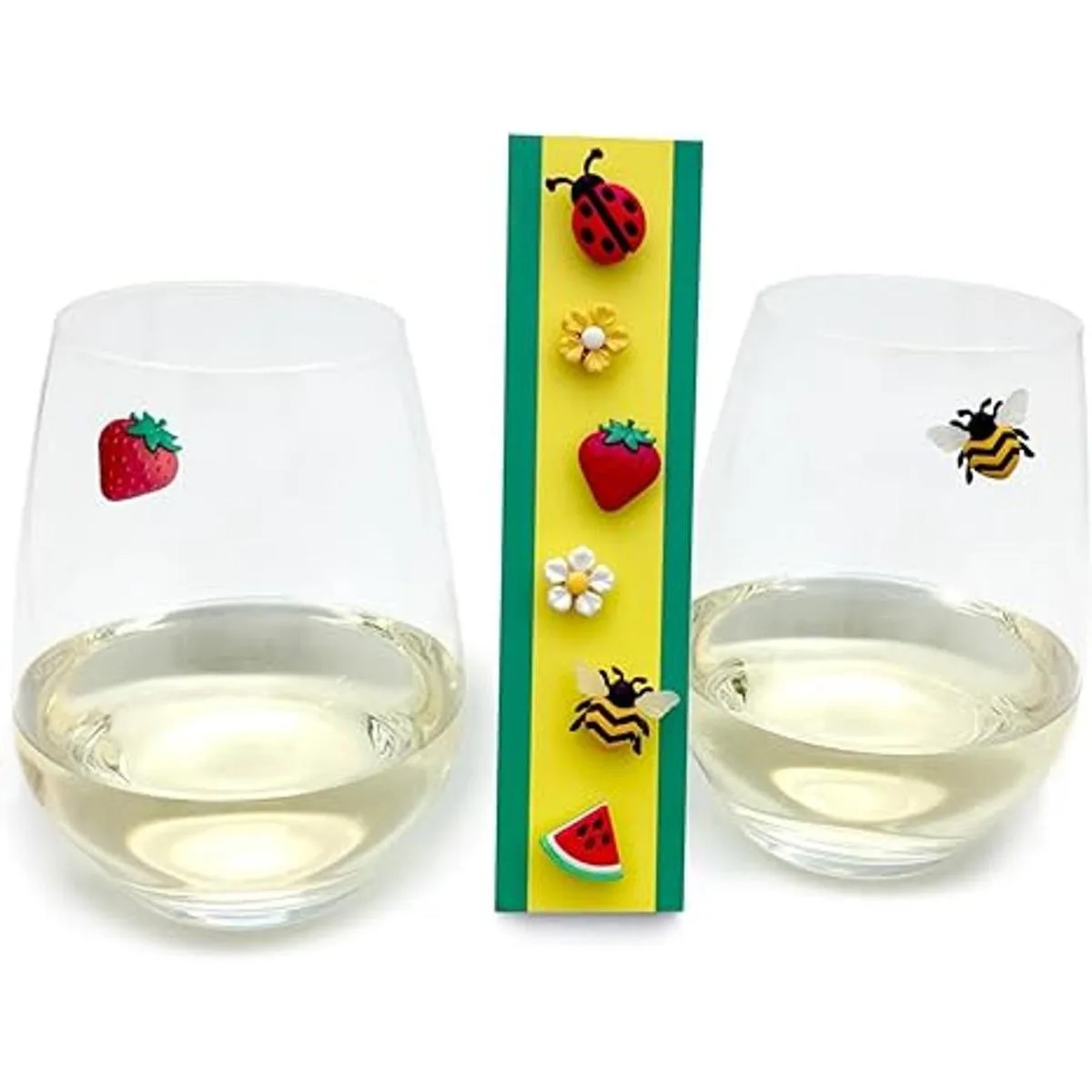 Simply Charmed Juego de 6 rotuladores magnéticos para copa de vino con abeja, fresa y flores