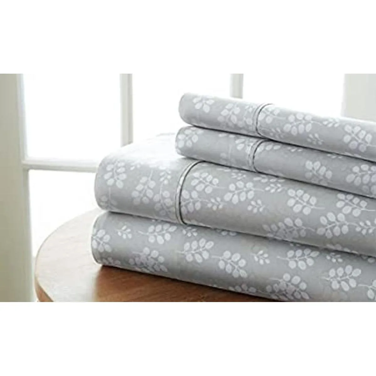 Simply Soft Juego de sábanas de 4 piezas con patrón de campo de trigo, tamaño matrimonial, gris SS4PCWHEAFULLGR
