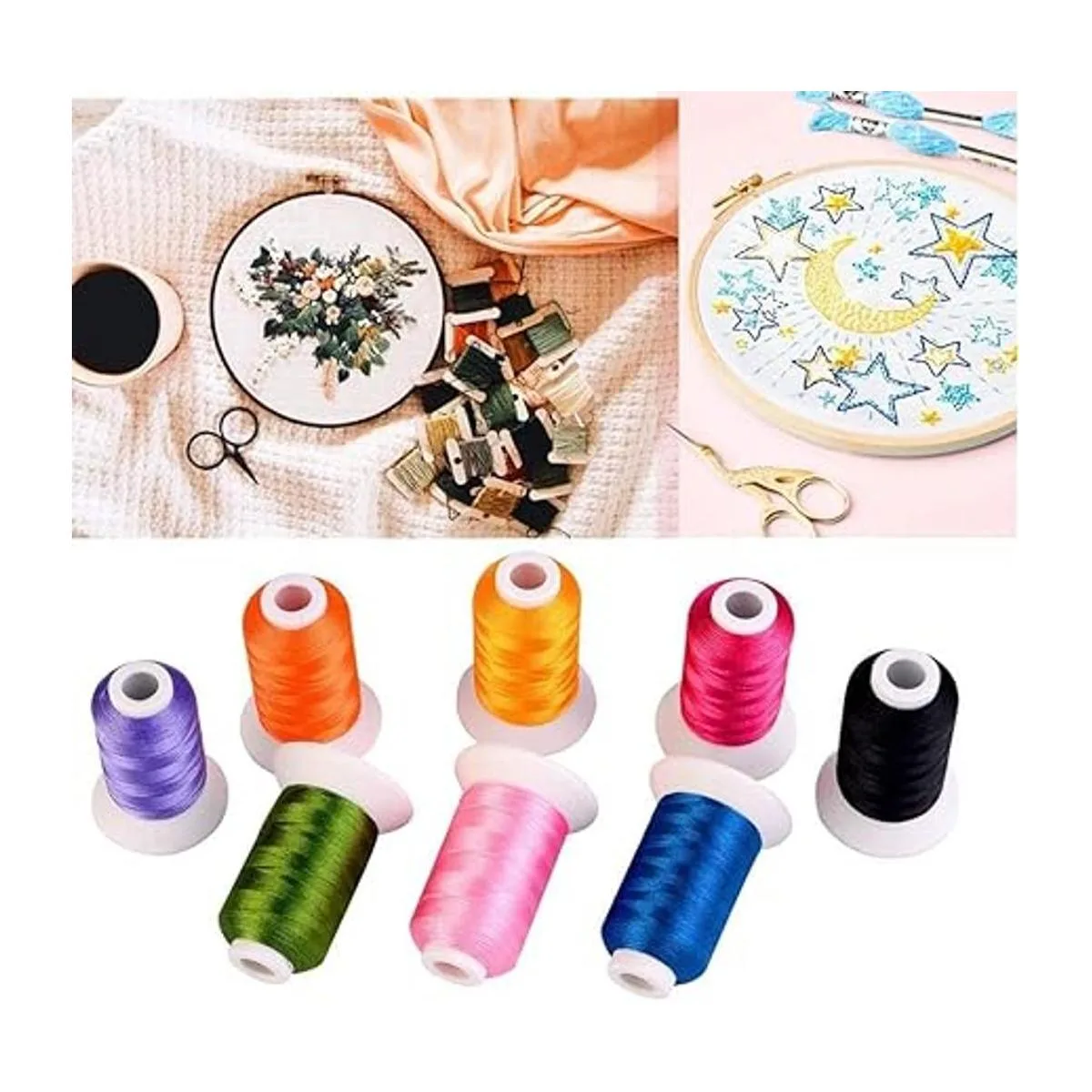 Simthread Kit de hilo de máquina de bordar de poliéster de 40 colores, 800 años para Brother Babylock Janome Singer Pfaff Husqvarna Bernina Maquinas de bordar y coser