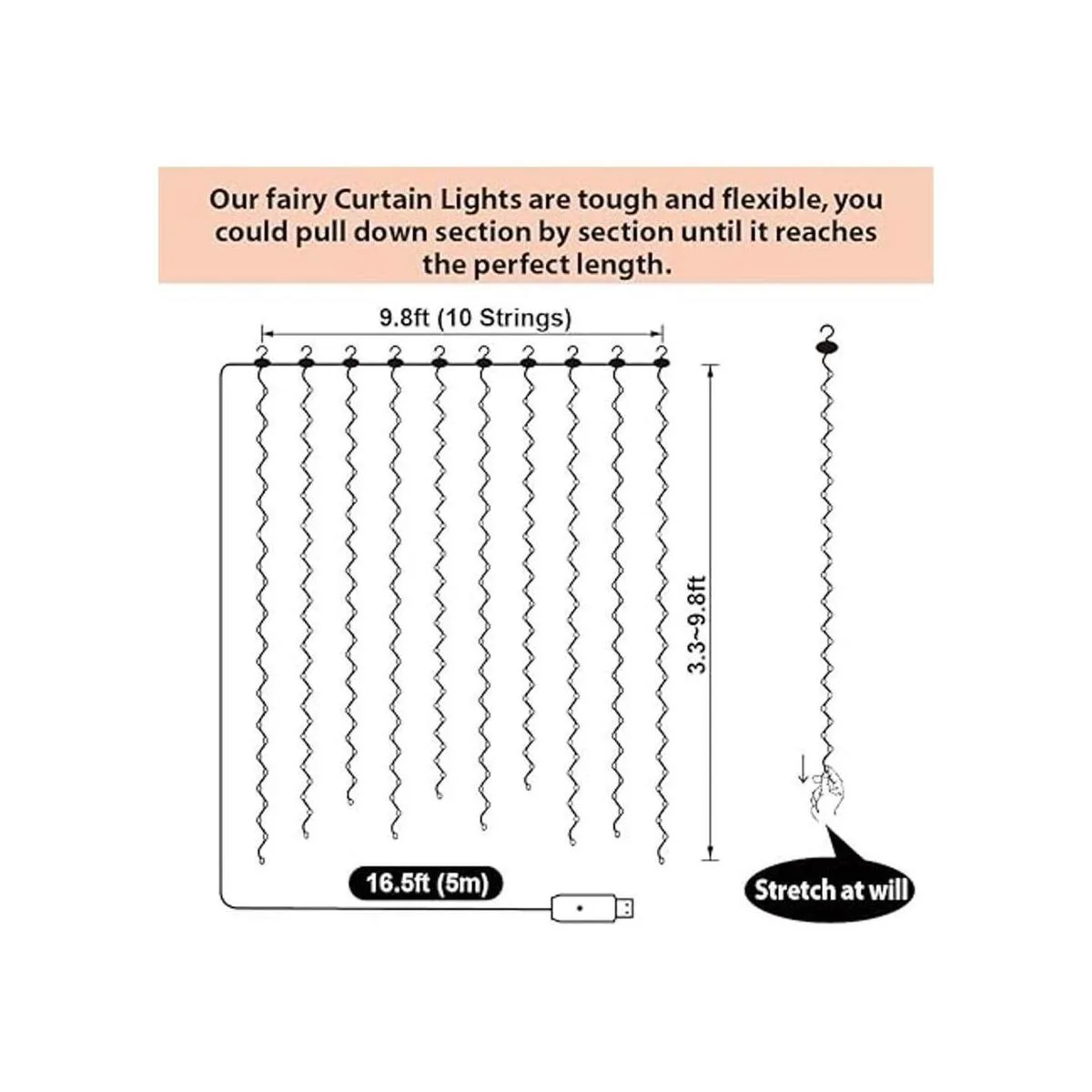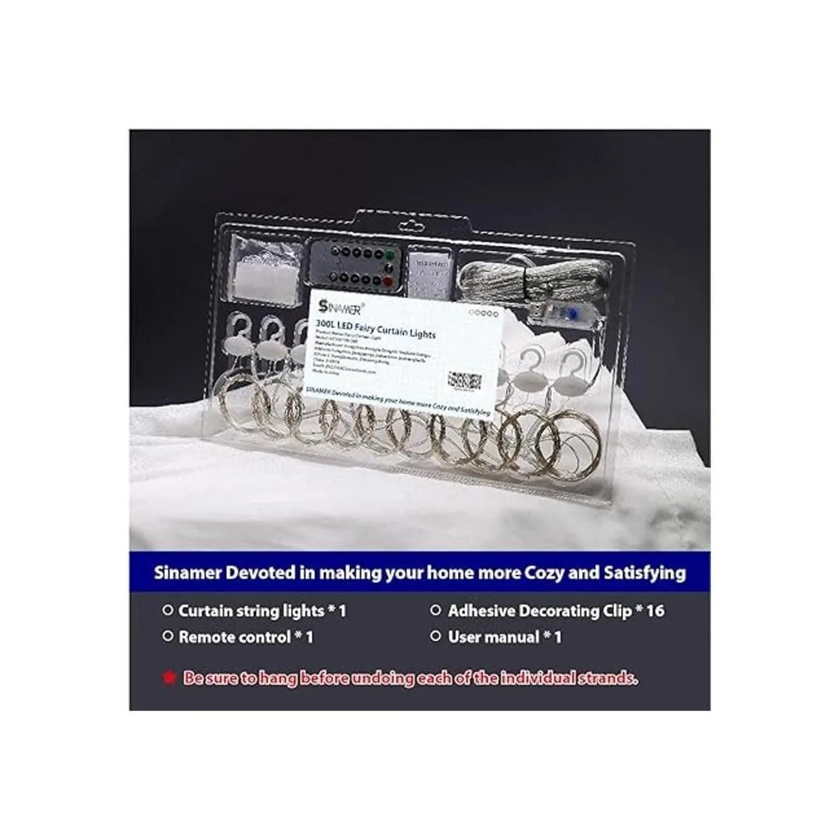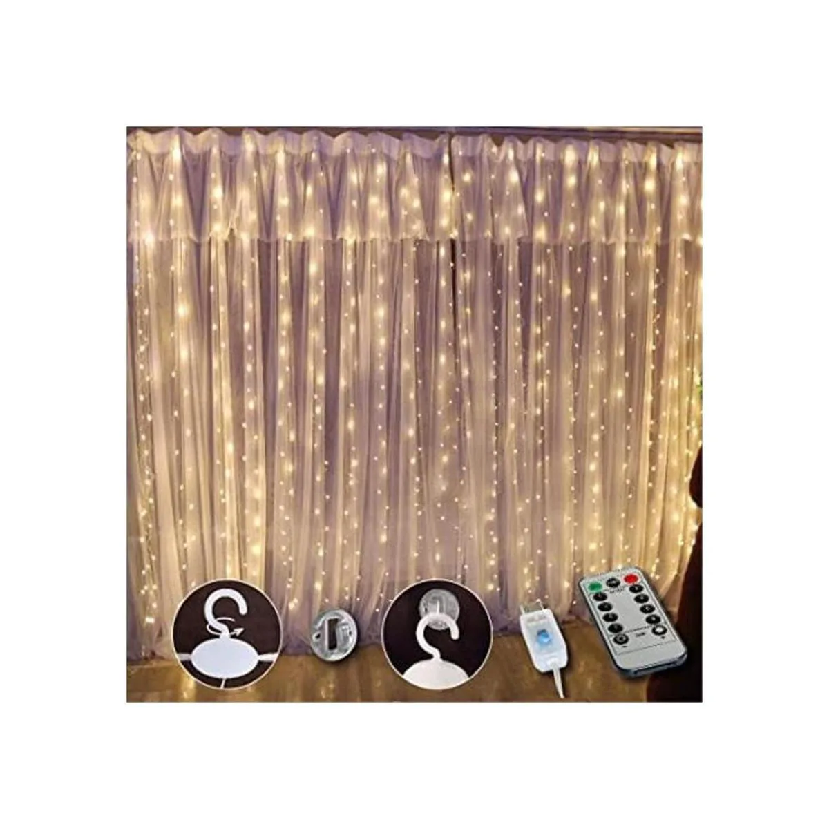 Fácil de instalar y duradero: no requiere montaje. Simplemente cárgalo a través del puerto USB y utiliza el controlador para elegir tu modo preferido. Las cuerdas verticales de las luces de cortina se pueden cortar a la longitud que desees y no afectarán el uso. Incluye 16 juegos de ganchos adhesivos sin daños. Instala en cualquier lugar que desees. Vida útil: 50000 horas.