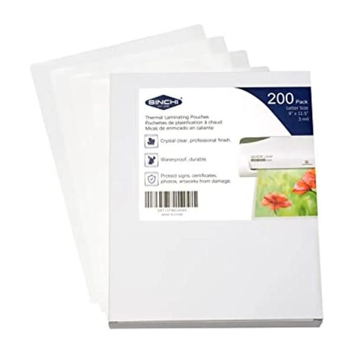 SINCHI Bolsas de laminación térmica, 3 mil, transparente, paquete de 200, hojas laminadoras tamaño carta de 9 x 11.5 pulgadas
