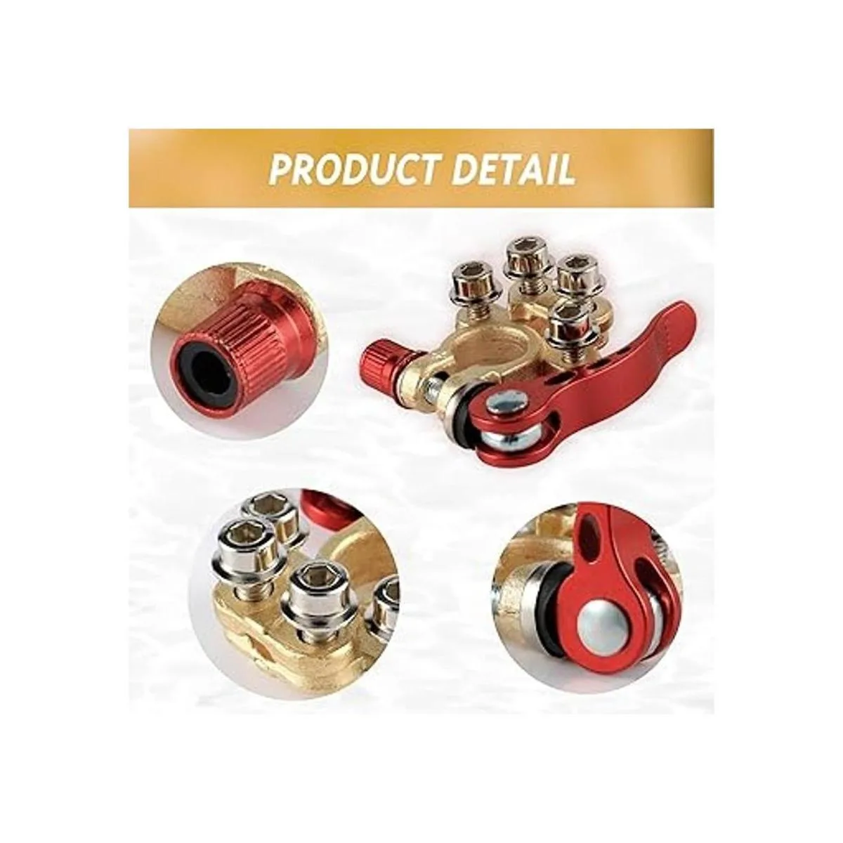 Alta calidad: hecho de cobre estañado, tiene 4 puertos para múltiples conexiones de cable, con buena conductividad eléctrica y resistencia a la corrosión, principalmente utilizado para batería trasera SAE / JIS tipo A.