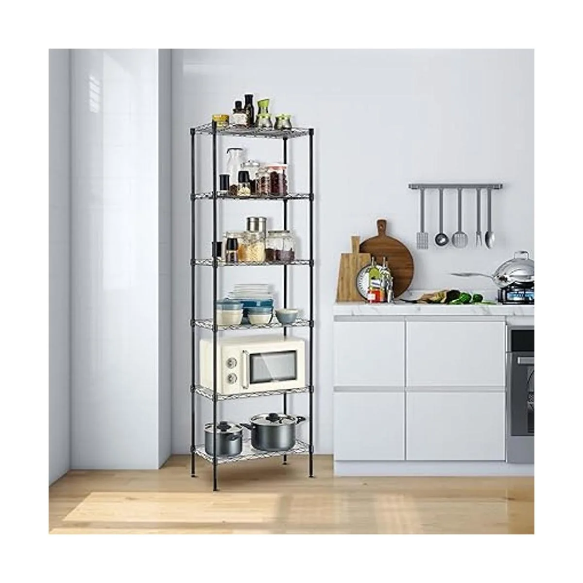 Estante de almacenamiento de metal de fácil montaje, niveladores de pies ajustables para suelos irregulares, estante de almacenamiento de 6 niveles hecho de acero al carbono resistente, proporciona resistencia y durabilidad
