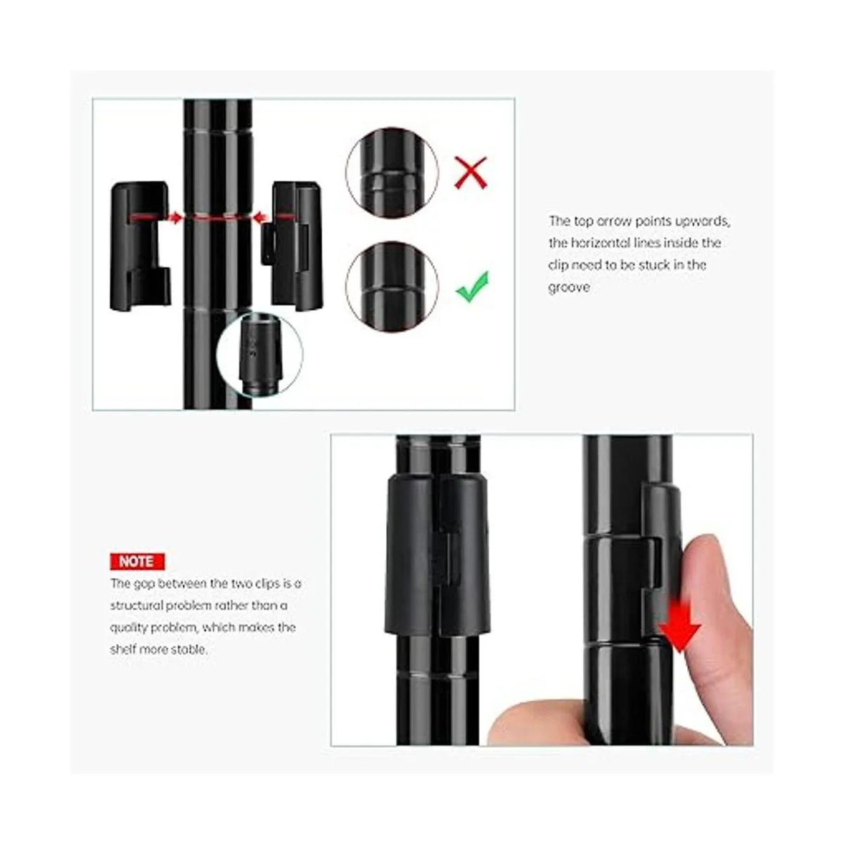 El paquete incluye: 4 postes superiores, 8 postes centrales, 4 postes inferiores, 6 estantes, 4 palancas de pies, 50 clips, 6 PP
