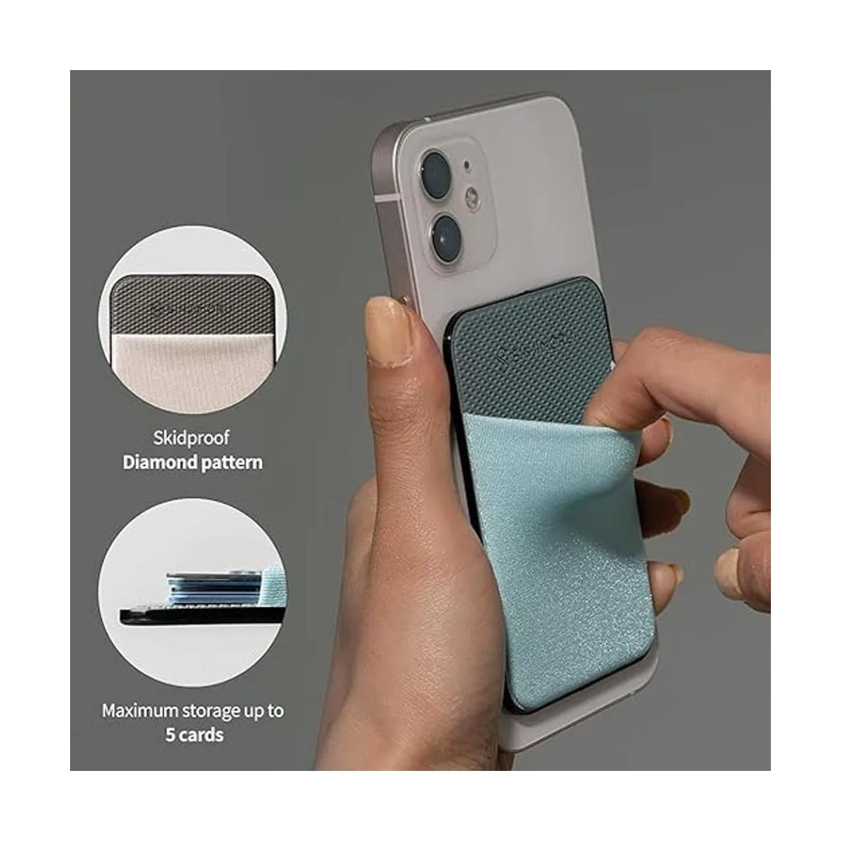 Cartera de tela flexible para teléfono: cartera magnética para iPhone MagSafe con tela elástica para que puedas sacar fácilmente tus tarjetas.