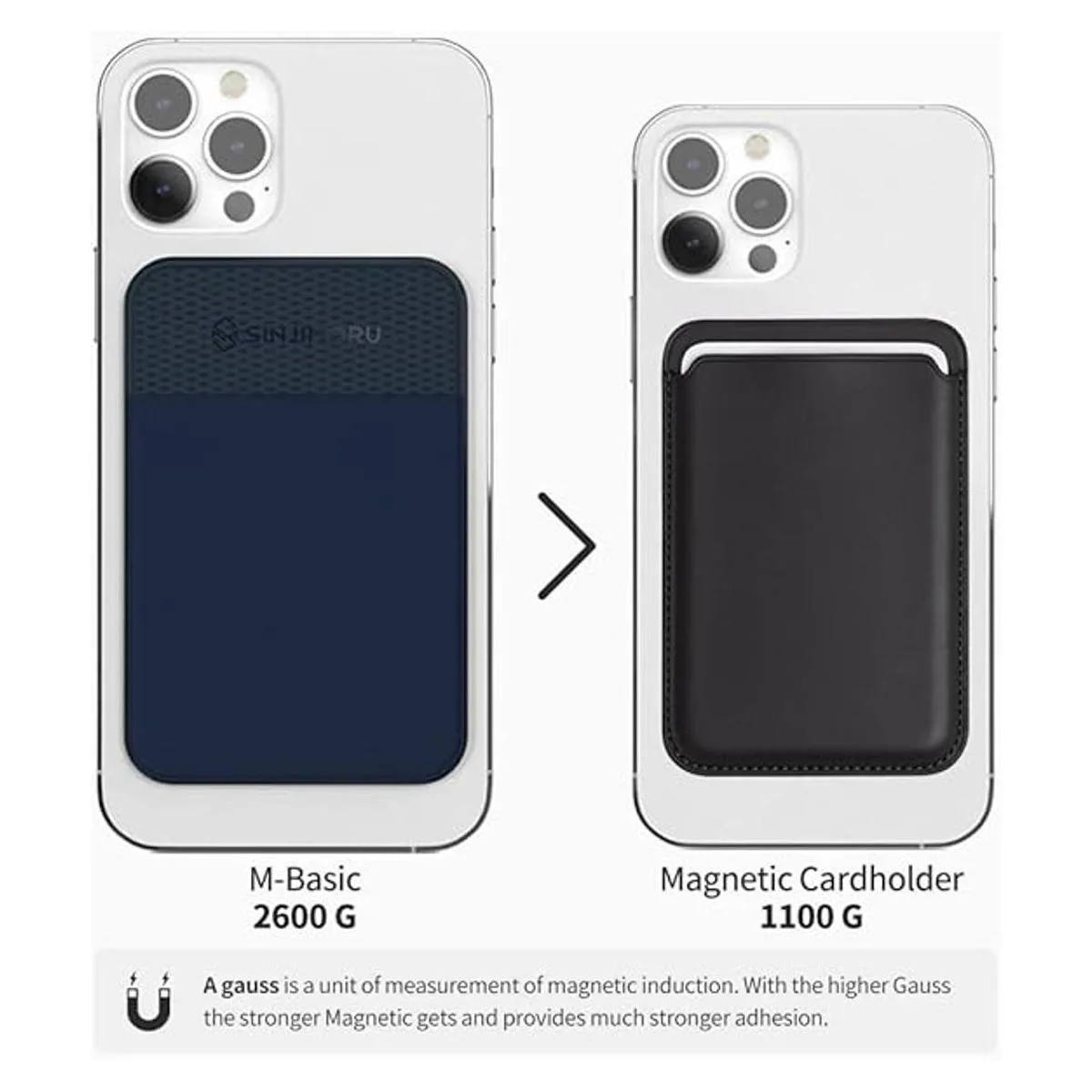Sinjimoru Cartera magnética elástica para teléfono, tarjetero magnético para la parte posterior del teléfono, como cartera de teléfono, se pega para cartera MagSafe compatible con iPhone 14 y 13 12, serie MBasic negro