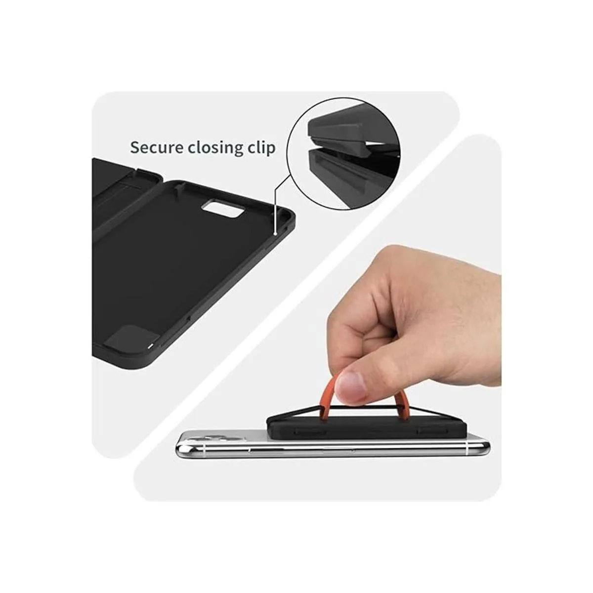 Correa de soporte para anillo de teléfono celular: la correa elástica evita que tu teléfono se caiga y la funda cerrada está segura con dos botones a presión.