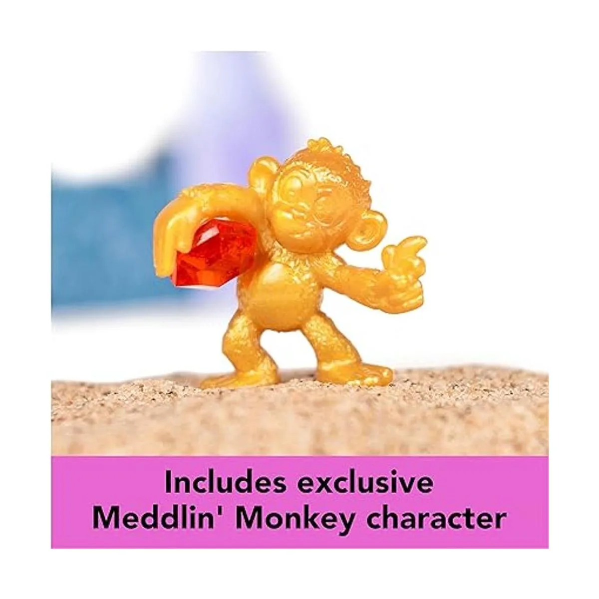 Incluye 1 unidad de la selva 1 parte superior, 1 base, 4 patas, 20 palos, 1 bandeja de moldeo, 5 personajes incluyendo el exclusivo mono Meddlin, 1 bolsa de arena cinética, 1 rubí de canje, 1 troquel, 1 hoja de instrucciones idioma español no garantizado