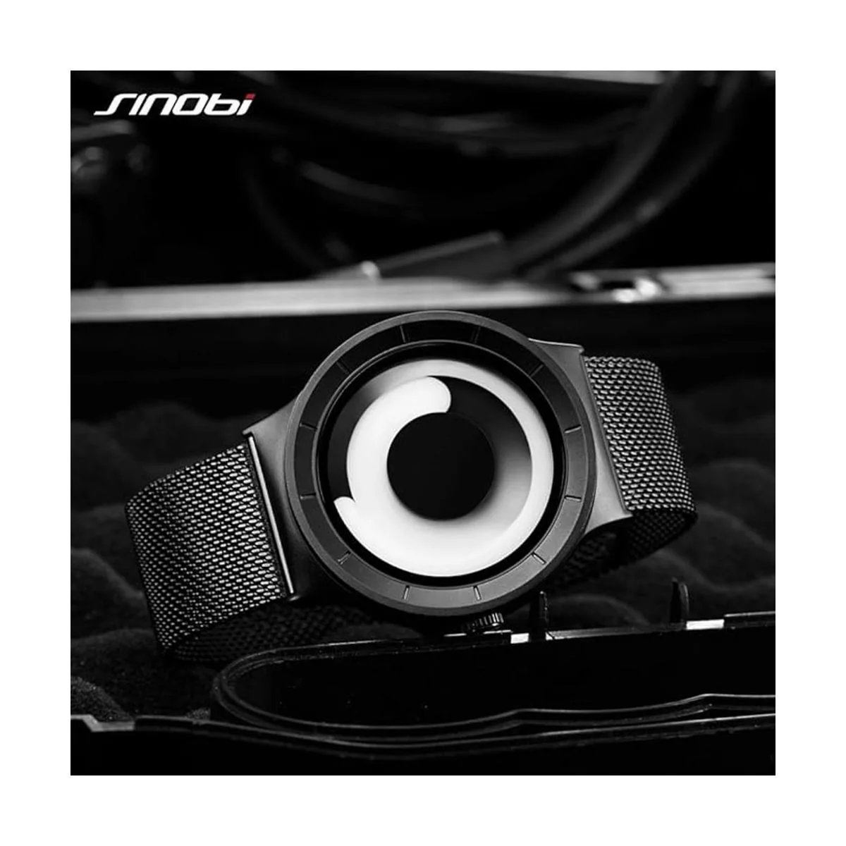 SINOBI Relojes de negocios para hombre, diseño original, creativo, de malla de acero para hombre, reloj masculino, reloj de pulsera único, Movimiento de cuarzo
