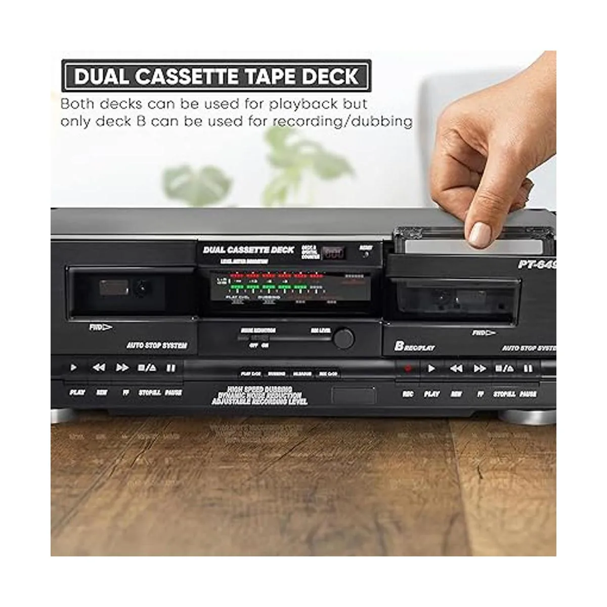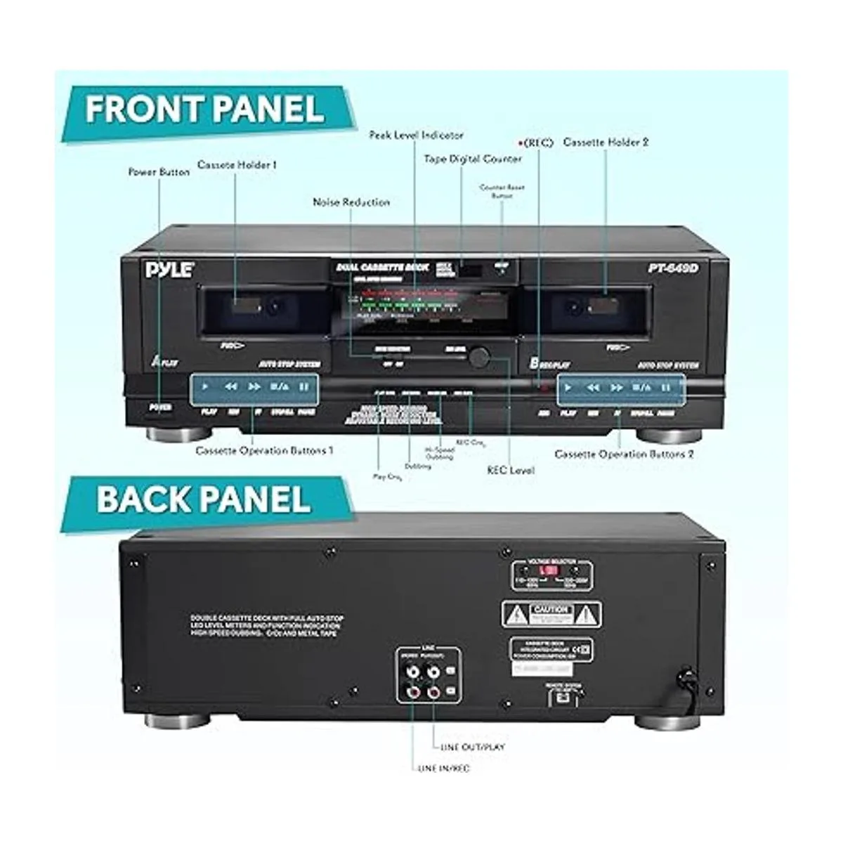 Sintonizador digital dual Cassette Pyle Home Media Player grabación de música dispositivo con cables RCA montaje intercambiable de hardware en rejilla Selector de cinta CrO2 incluido contador de 3 dígitos de cinta 110 V220 V.