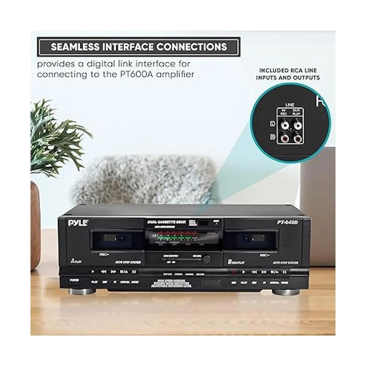 SEAMLESS INTERFACE CONNECTIONS: The cassette player dual deck provides a digital link interface for connecting to the PT600A amplifier. Included are RCA line inputs and outputs.
