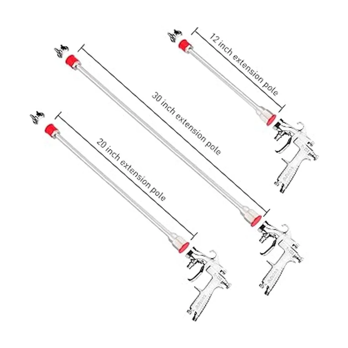SINYOWOT Paquete de 3 extensiones de punta de pistola pulverizadora sin aire con protector rojo, pulverizador de pintura sin aire, barra de extensión 11.8 in19.7 in29.5 in