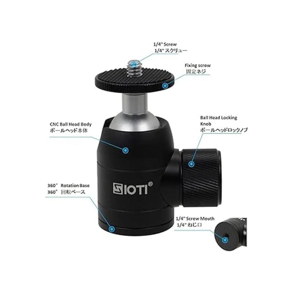SIOTI Trípode mini cabeza de bola de montaje en trípode cabeza de bola de metal 360 Pan de 90 Montaje de trípode con tornillo de 14 pulgadas para cámara digitalDSLR compactateléfono celularmonopieGoprosoporte de luzcasa de luz