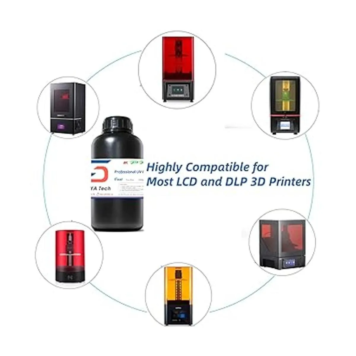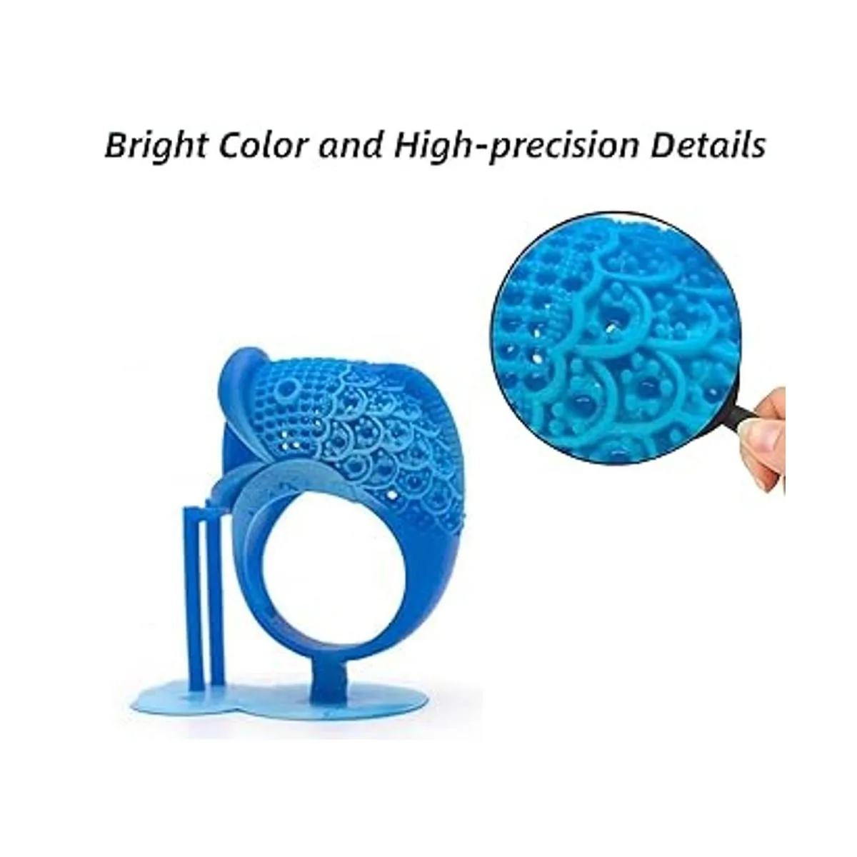 Alta resolución y más suave: la resina UV azul real fundido es más suave que el morado fundido y tiene una resolución extremadamente alta, que puede capturar características complejas, imprimir estructuras ultrafinas y proporcionar acabados de superficie lisa y detalles de alta precisión para modelos impresos.