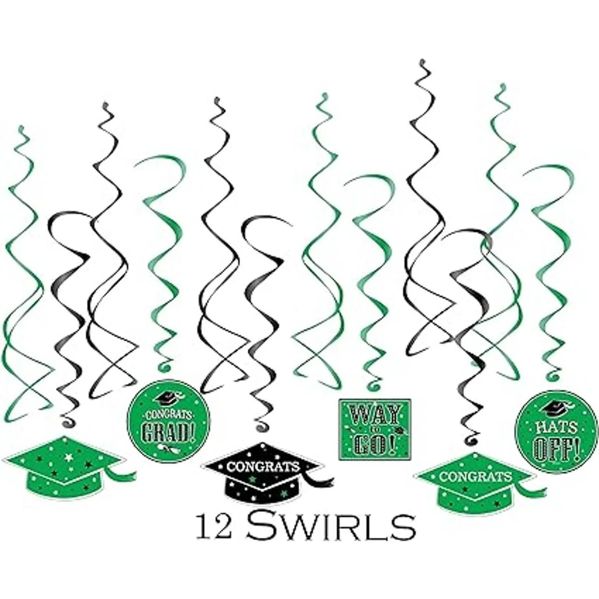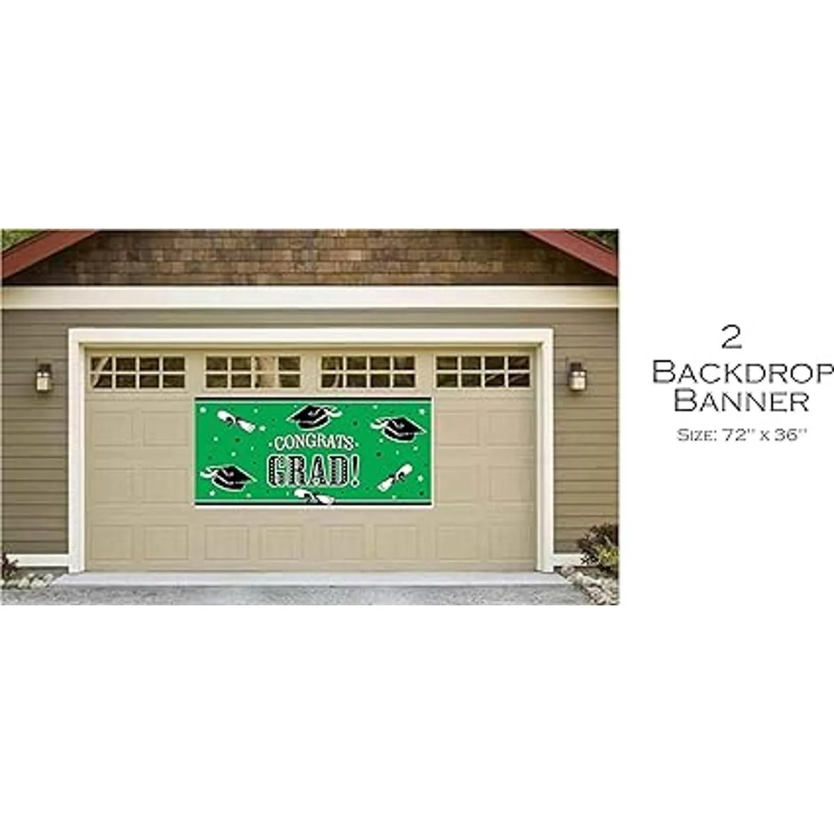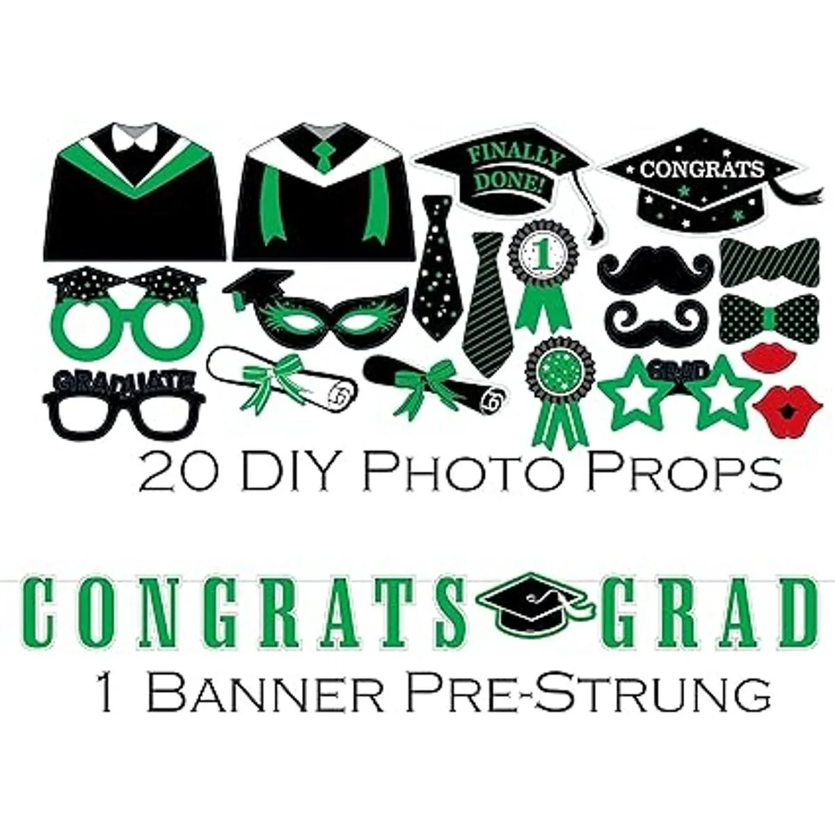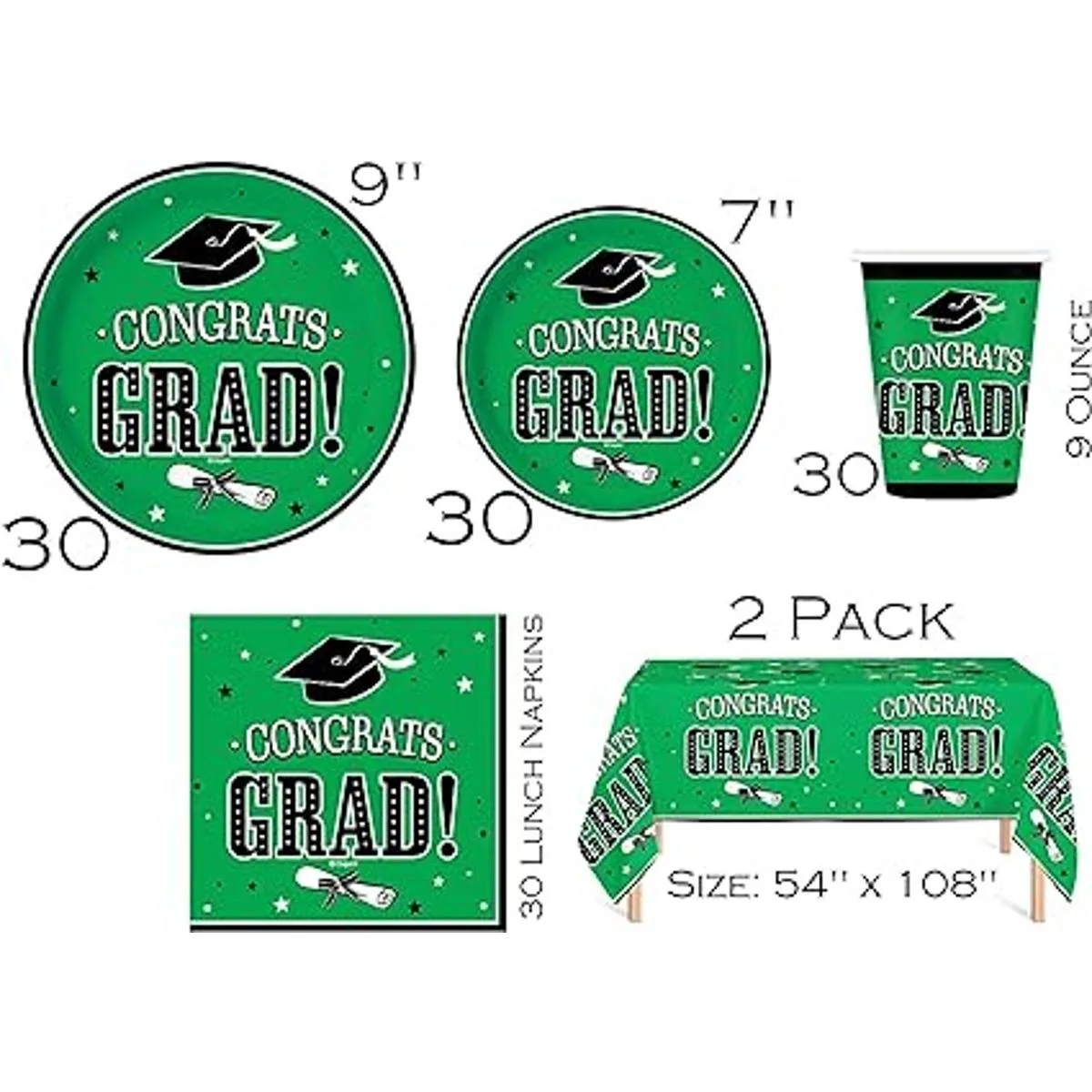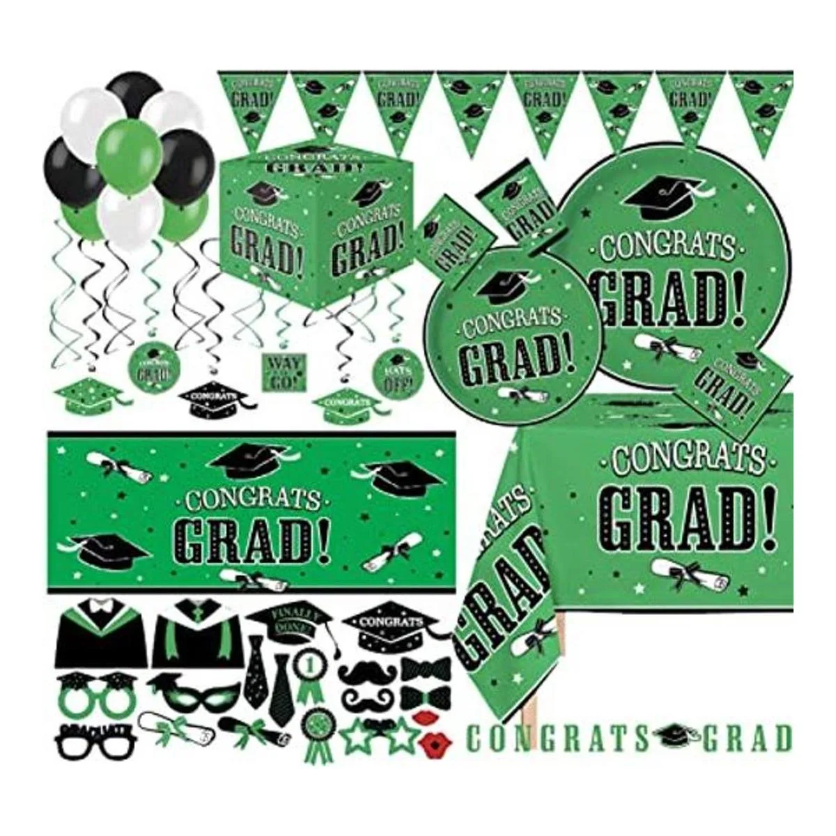Sirve 30 Ultimate Party Pack Felicidades Grad Green Party Supplies Platos de papel de cena de 9.0 in Platos de papel de postre de 7 pulgadas Tazas de 3 capas 2 cubiertas de mesa 20 accesorios para fotos 12 remolinos 30 globos 1 pancarta 2 cartel cartel Caja de soporte Graduación Fiesta Suministros Verde Fiesta de Graduación Tema