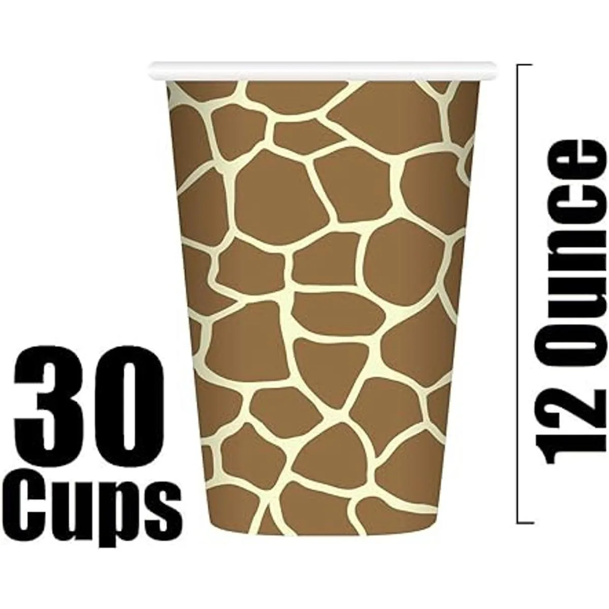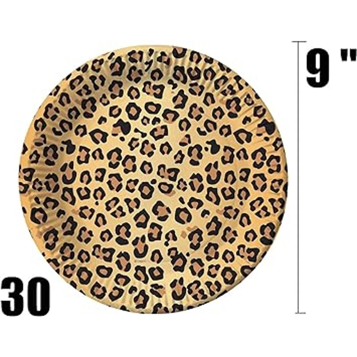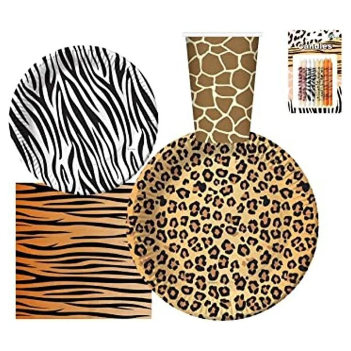 Sirve para 30 invitados en la selva, zoológico, estampado de animales, suministros para fiesta de cumpleaños, platos de cena de 9 pulgadas, platos de postre de 7 pulgadas, tazas de 12 onzas, servilletas 24 velas con estampado de animales del zoológico, temática de safari en la selva