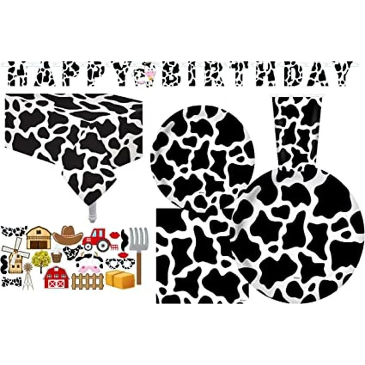Vajilla de fiesta de cumpleaños con estampado de vaca para 30 invitados