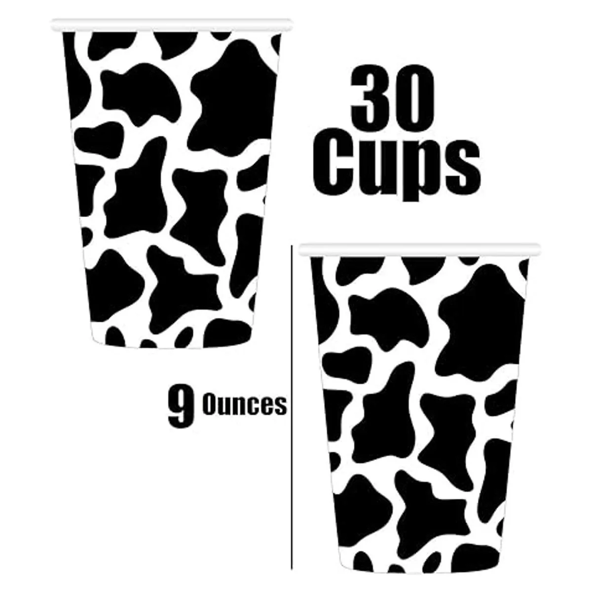 Sirves Paquete de 30 suministros esenciales para fiestas con estampado de vacas, platos de papel de postre de 9 pulgadas, platos de papel de postre de 7 pulgadas, vasos de 9 onzas, servilletas de 3 capas, accesorios para fotos, cubierta de mesa, suministros para fiestas de cumpleaños con temática de vacas